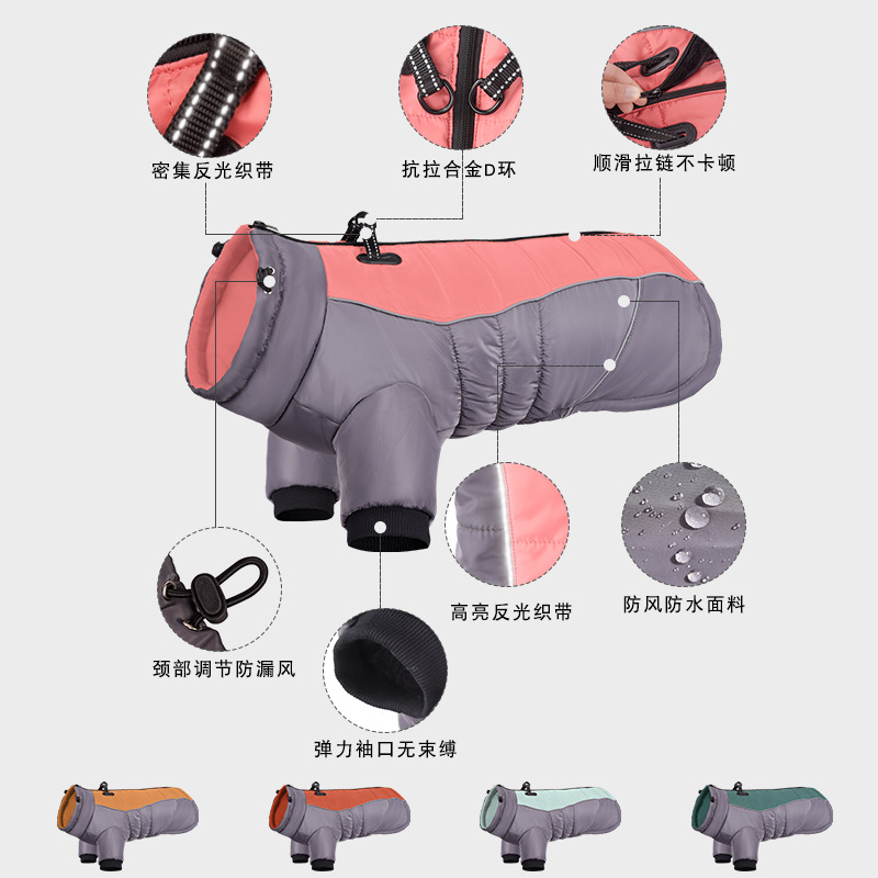Reflective Warm Pet Clothes Waterproof Thickened Dog Clothes Medium and Large Cross-Border Dog Clothing Amazon New