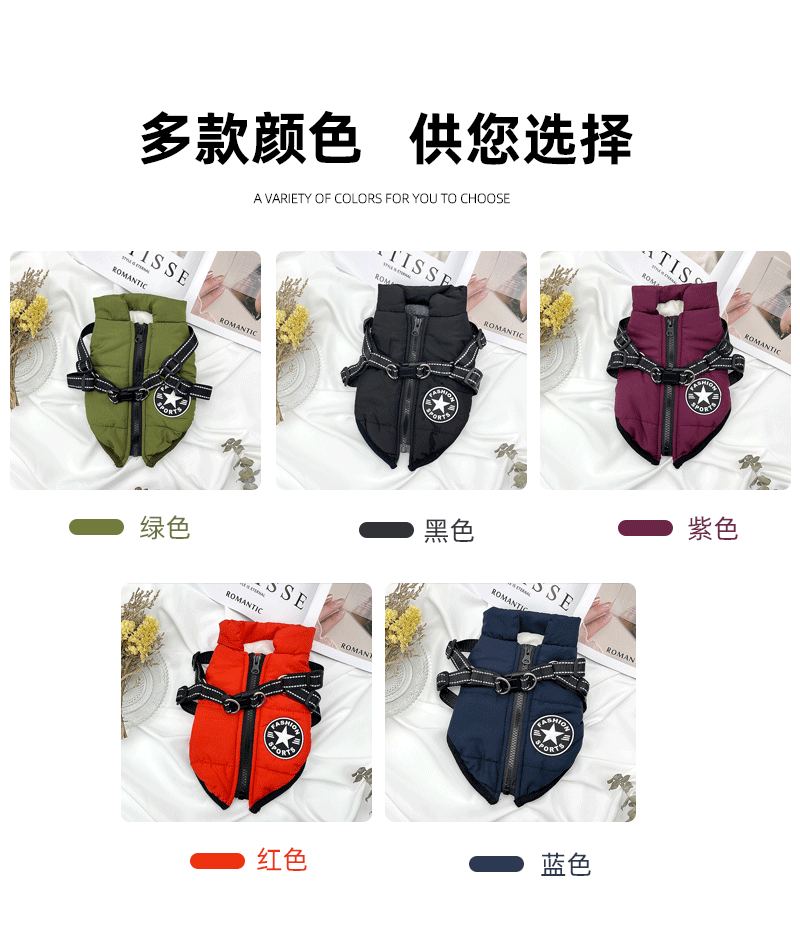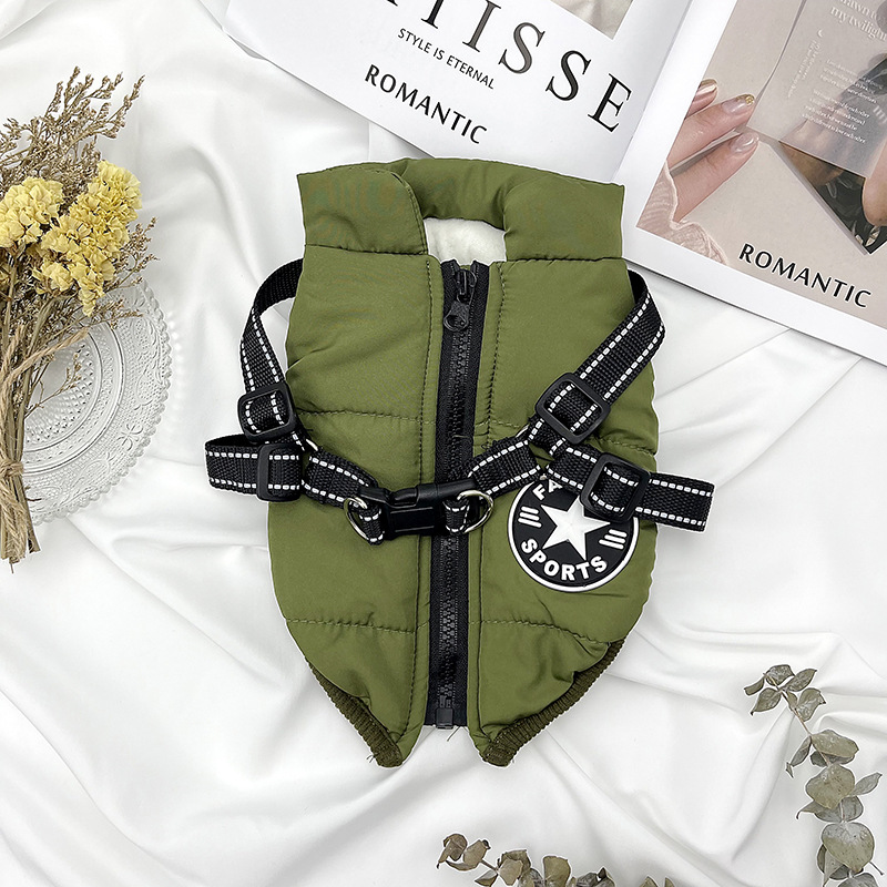 Cross-Border New Arrival Pet Clothes Waterproof Warm Dog Cotton-Padded Clothes Winter Ski Suit Chest Back Integrated Cotton Clothes Wholesale