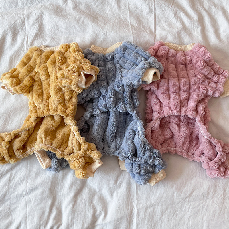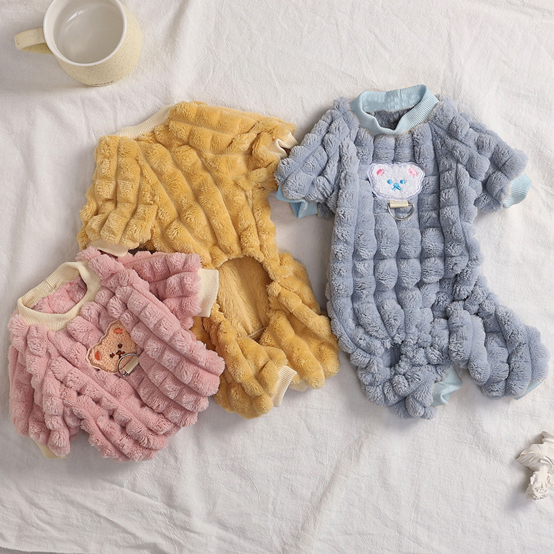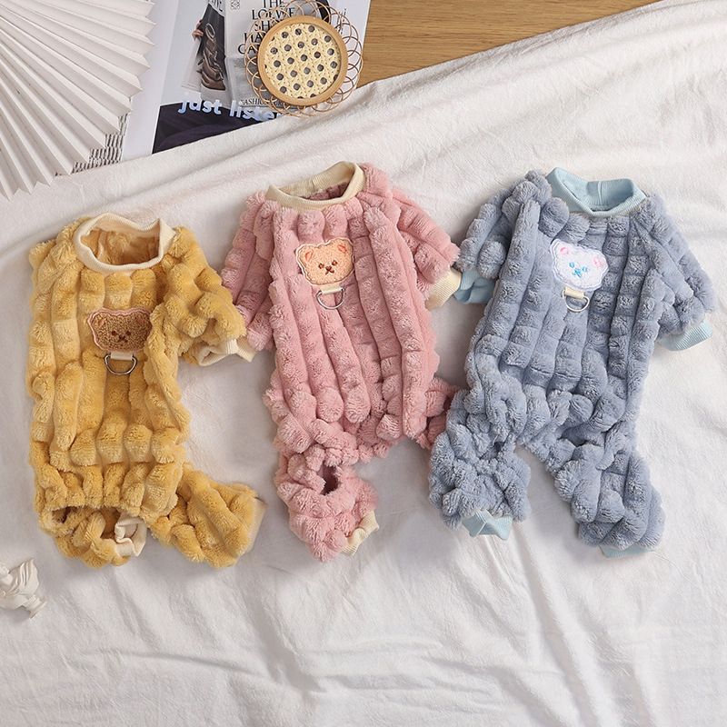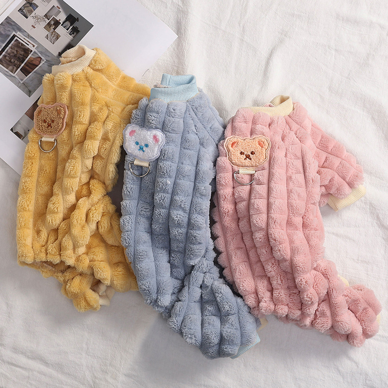 Dog Clothes Winter with Pull Ring Four Feet Fluffy Jacket Teddy Bichon Small Dog Pet Autumn/Winter Clothes Thickened Thermal Wear