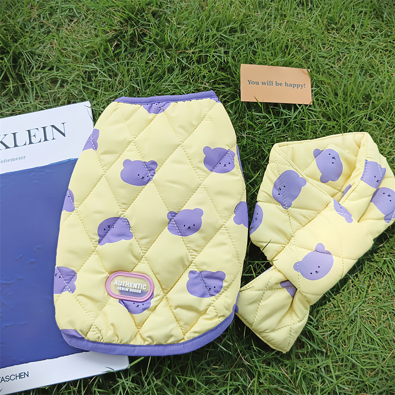 Pet Dog Clothes Vest Autumn and Winter Thin Warm Puppy Cute Cartoon Jarre Aero Bull Teddy Cotton-Padded Jacket Cat Clothes