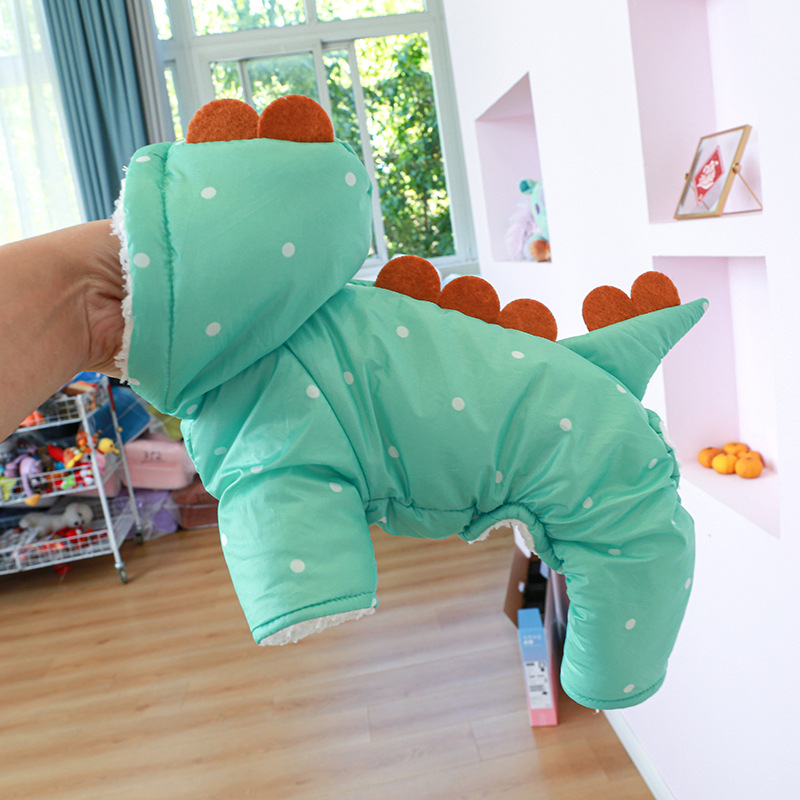 Pet Coat Dog Clothes Wholesale Small and Medium-Sized Dogs Cat Clothing Winter Fleece-lined Thickened Chubby Dinosaur Cotton-Padded Coat