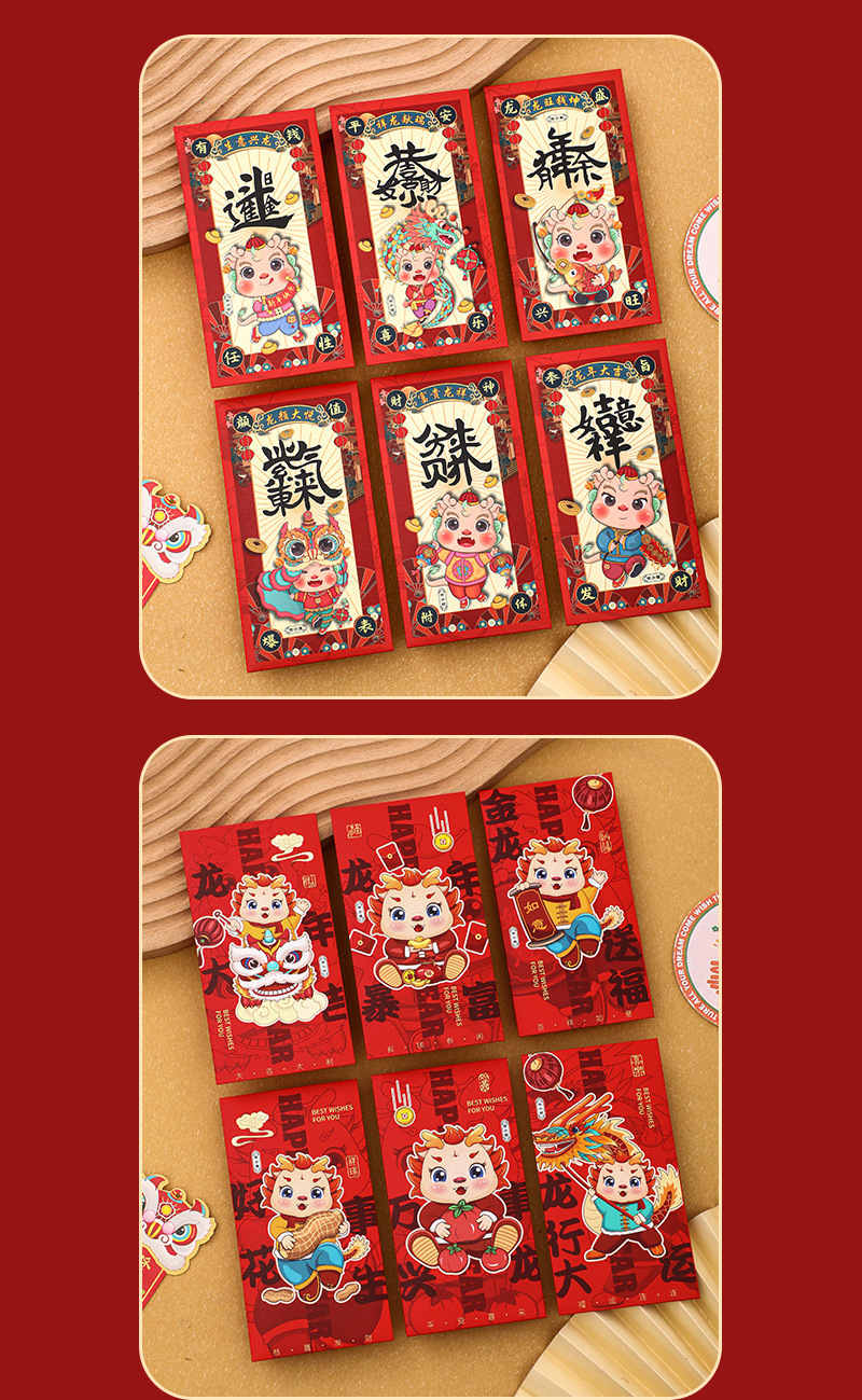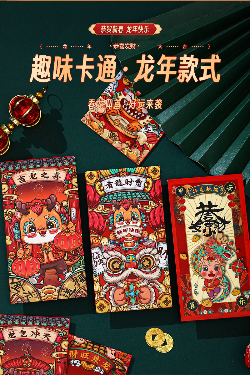 Personalized Creative Dragon Year Red Envelope National Fashion Cartoon New Year Red Envelope Spring Festival Red Pocket for Lucky Money Lucky Packet Li Weifeng Delivery