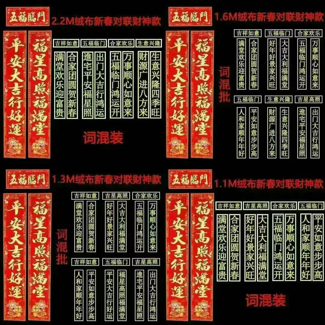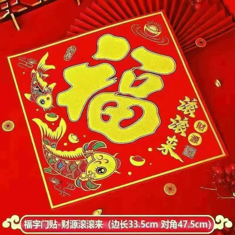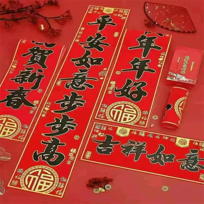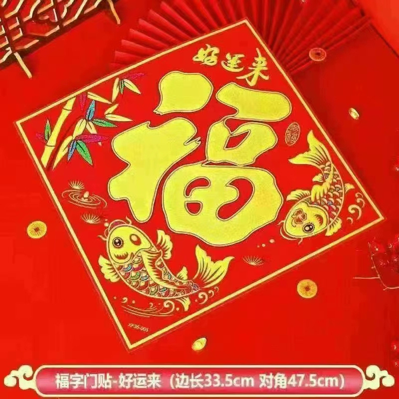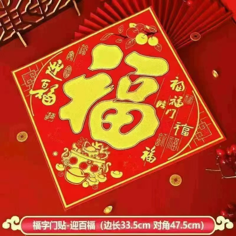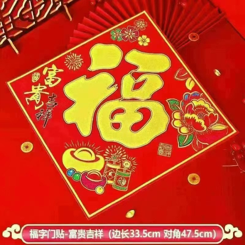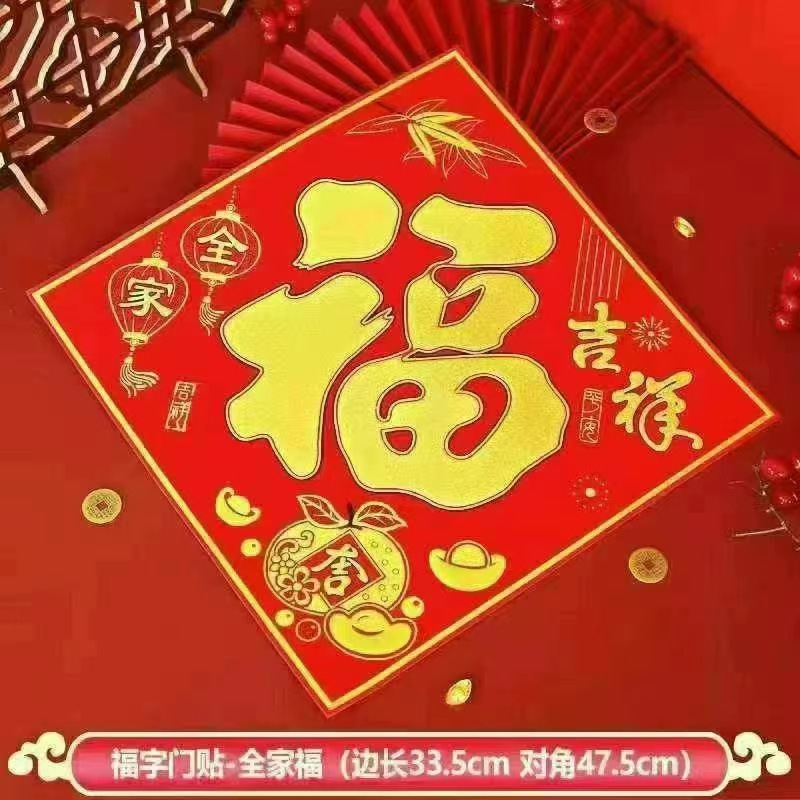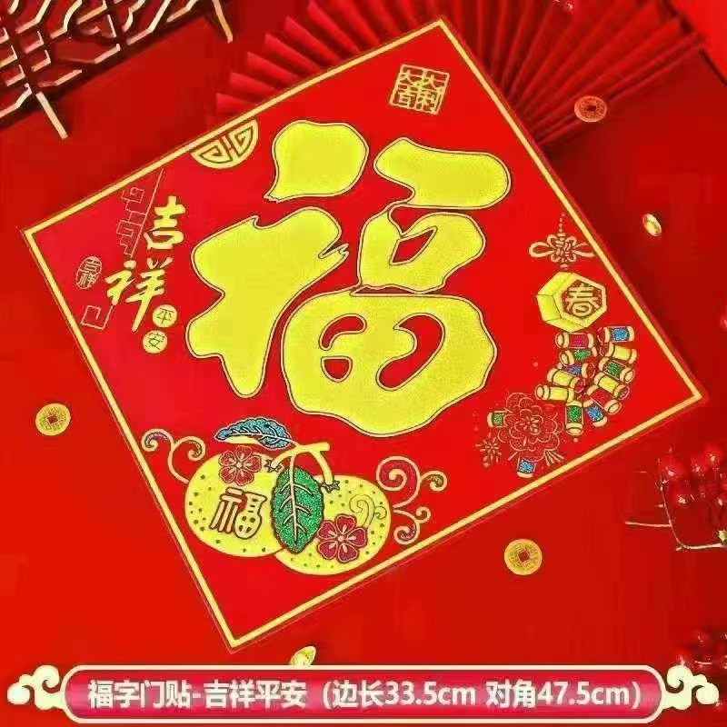 Haowangfu New Year Couplet Flannel Couplet Flannel Fu Character Comes with Full Adhesive New Year Door Community Entry Door Door