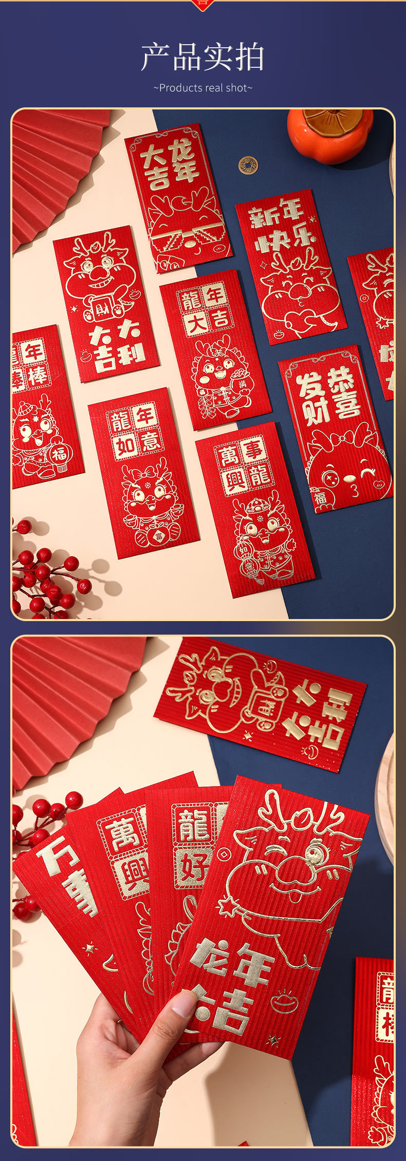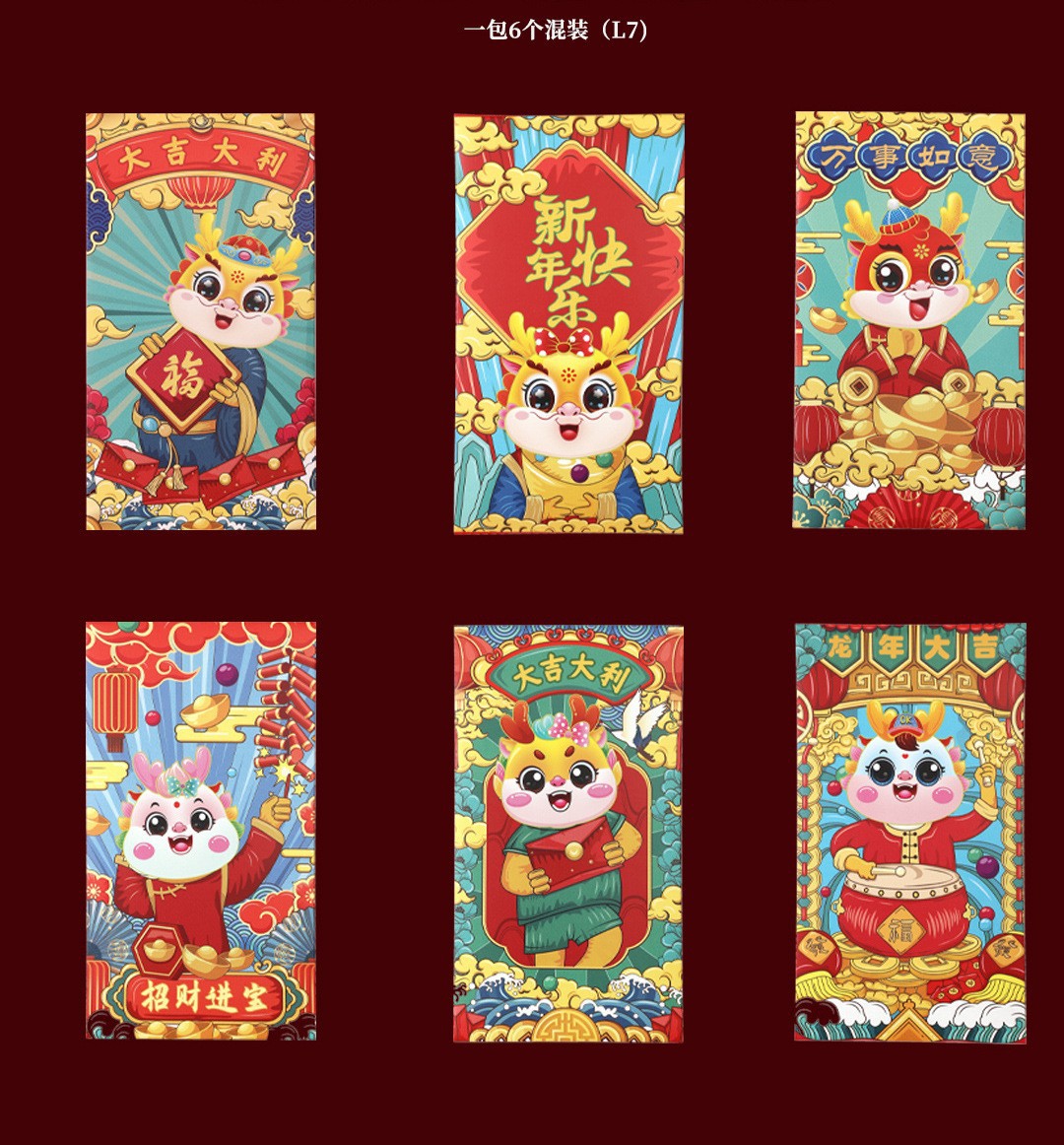 2024 New Dragon Year Red Envelope Gold Leaf Vertical Pattern Gift Seal Thousand Yuan Bag Printing New Year Cartoon Chinese Zodiac Signs Red Envelope