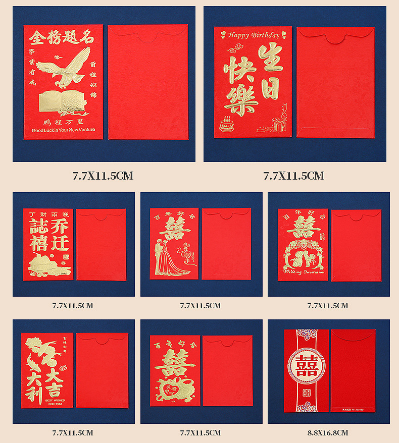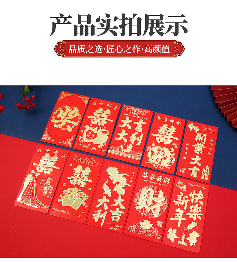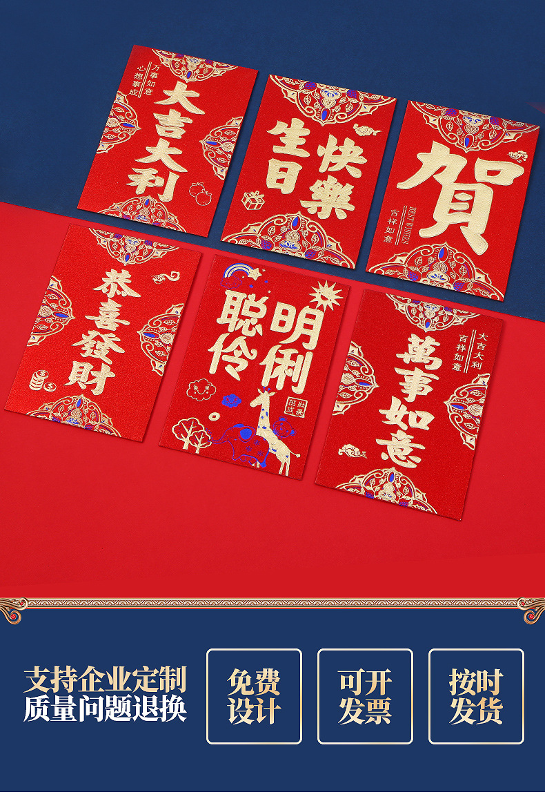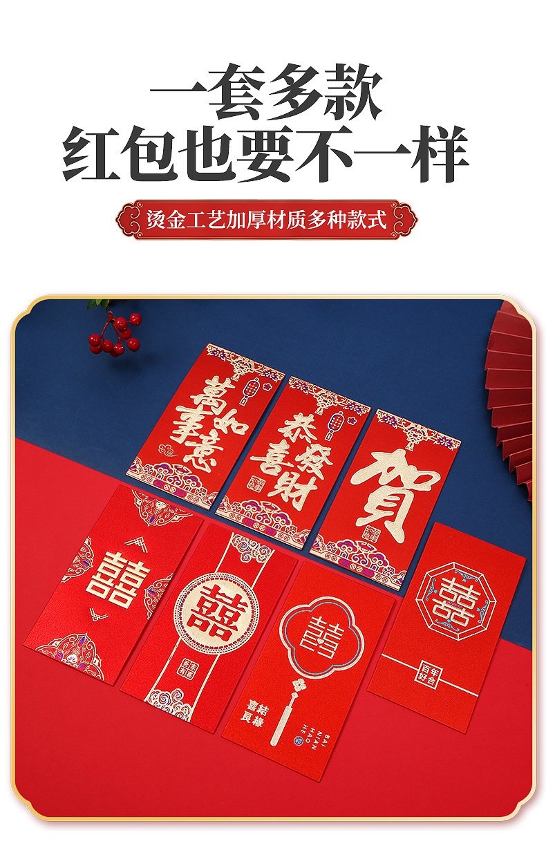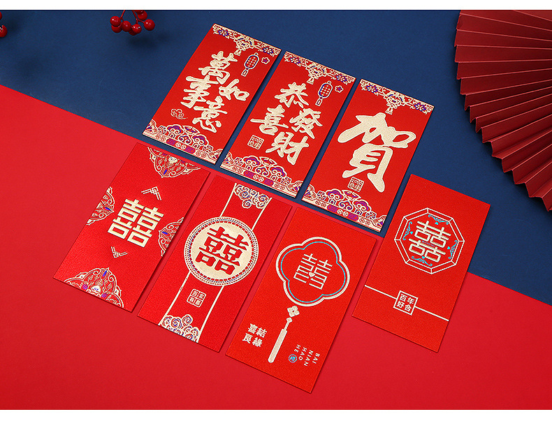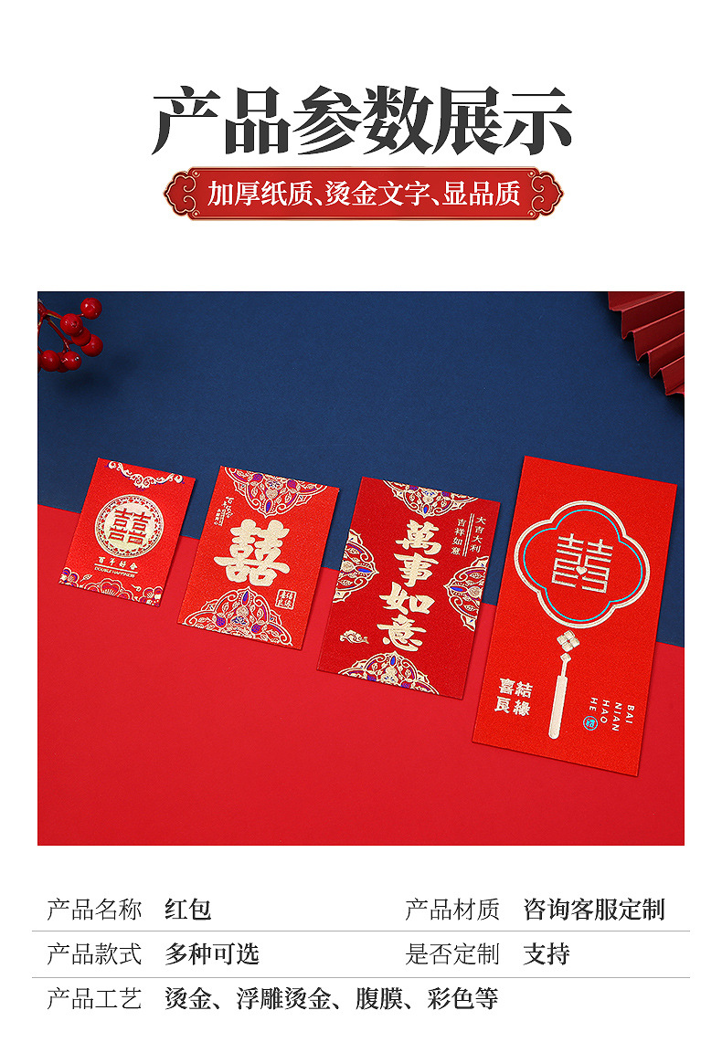 Chinese Style Gilding New Year Red Envelope Customized Logo Enterprise Advertising Lucky Money Envelope Red Packet Wedding Blocking Door Creative Red Packet