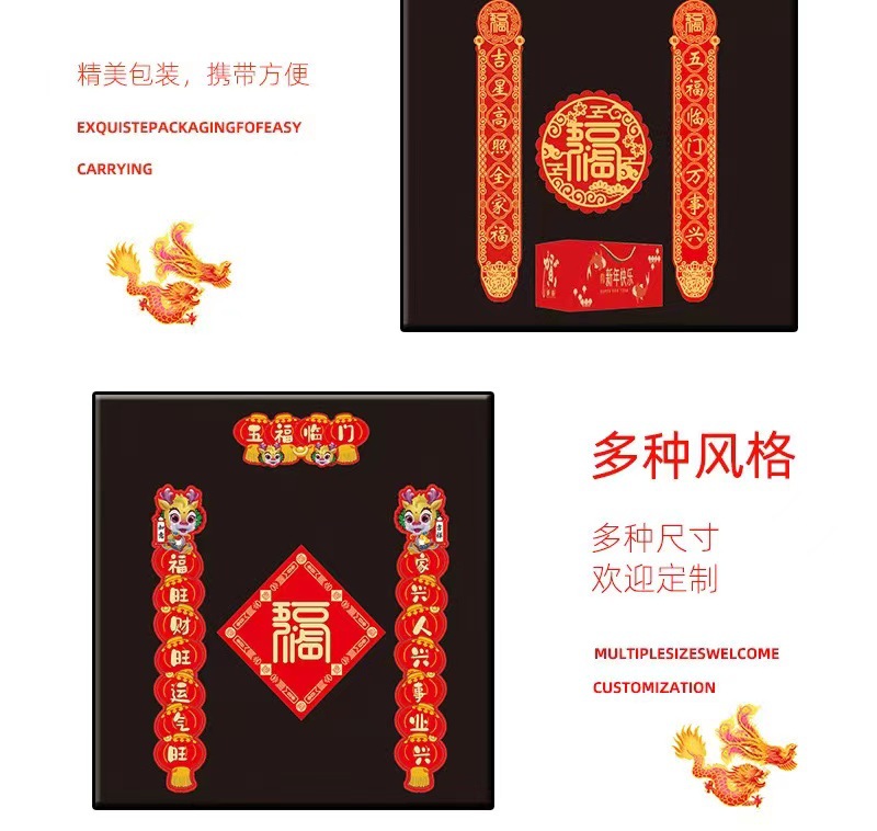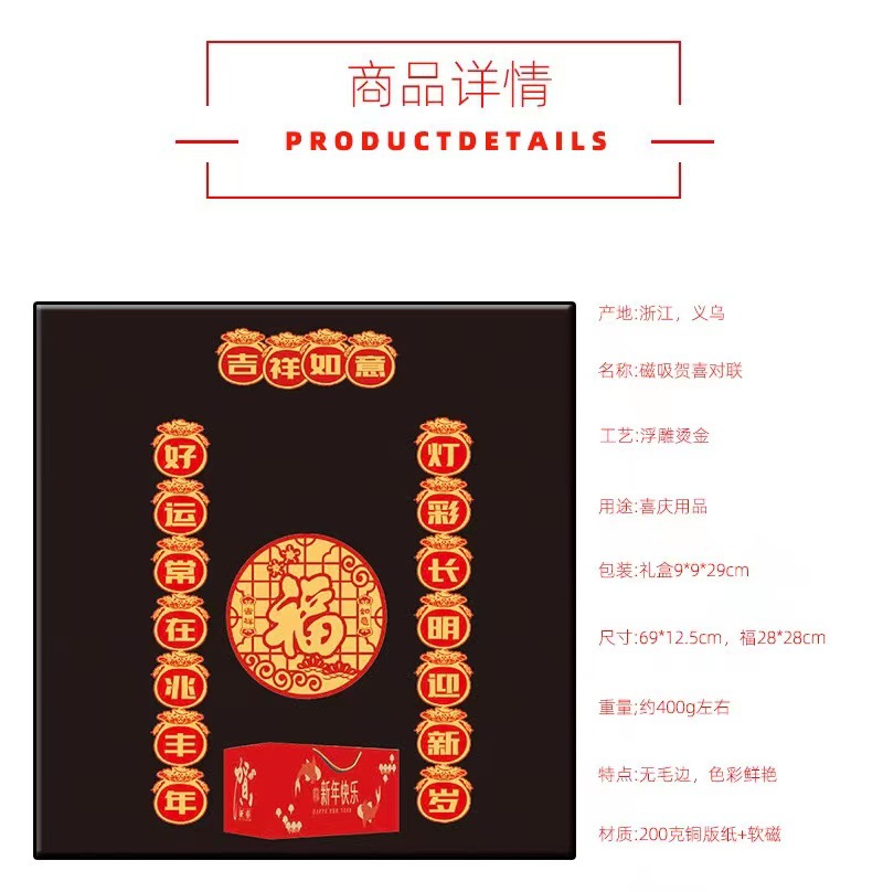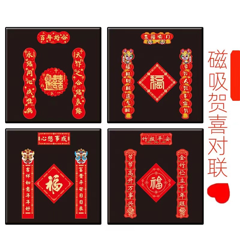 2024 Magnetic Couplet Spring Couplets Portal Decoration Housewarming Happiness Creative Small Antithetical Couplet Suit Couplet