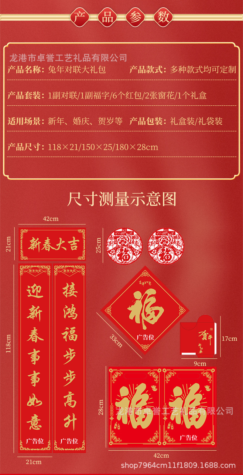 2024 Couplet Customized Gift Bag Red Envelope Fu Character Customized Bank Enterprise Advertising Insurance New Year Couplet Printed Logo