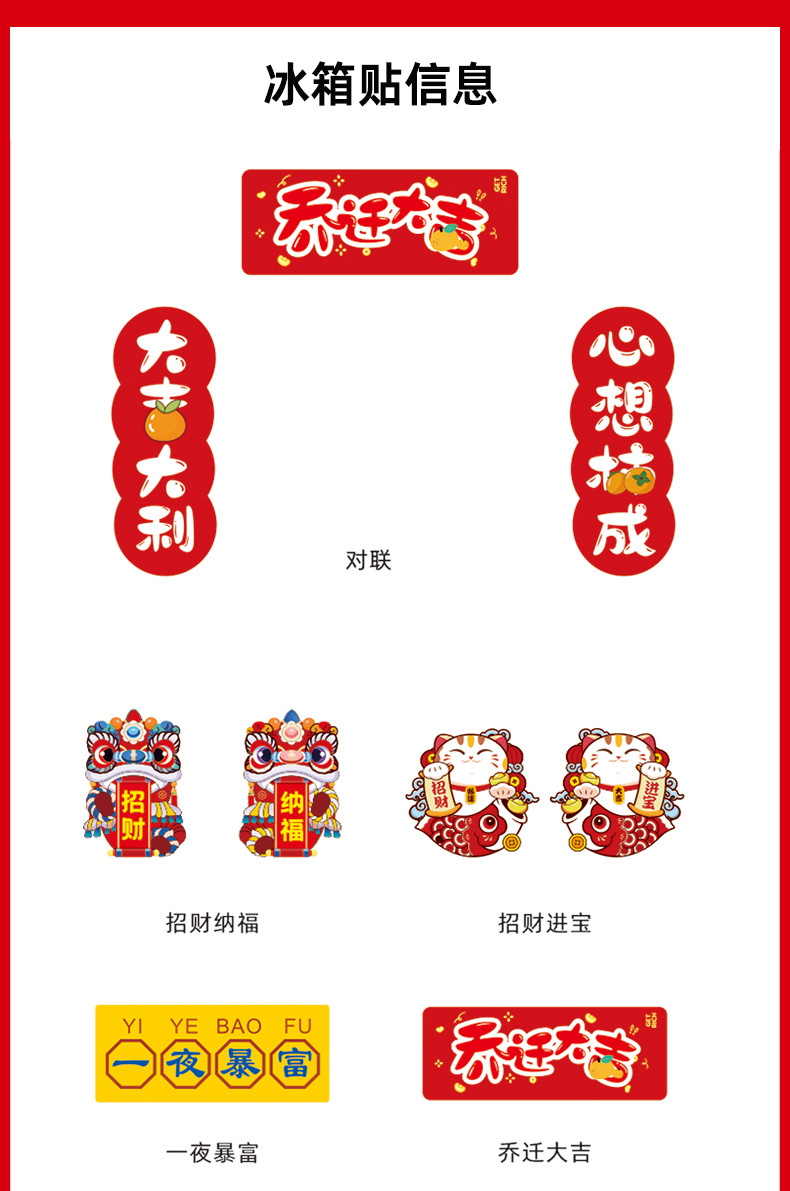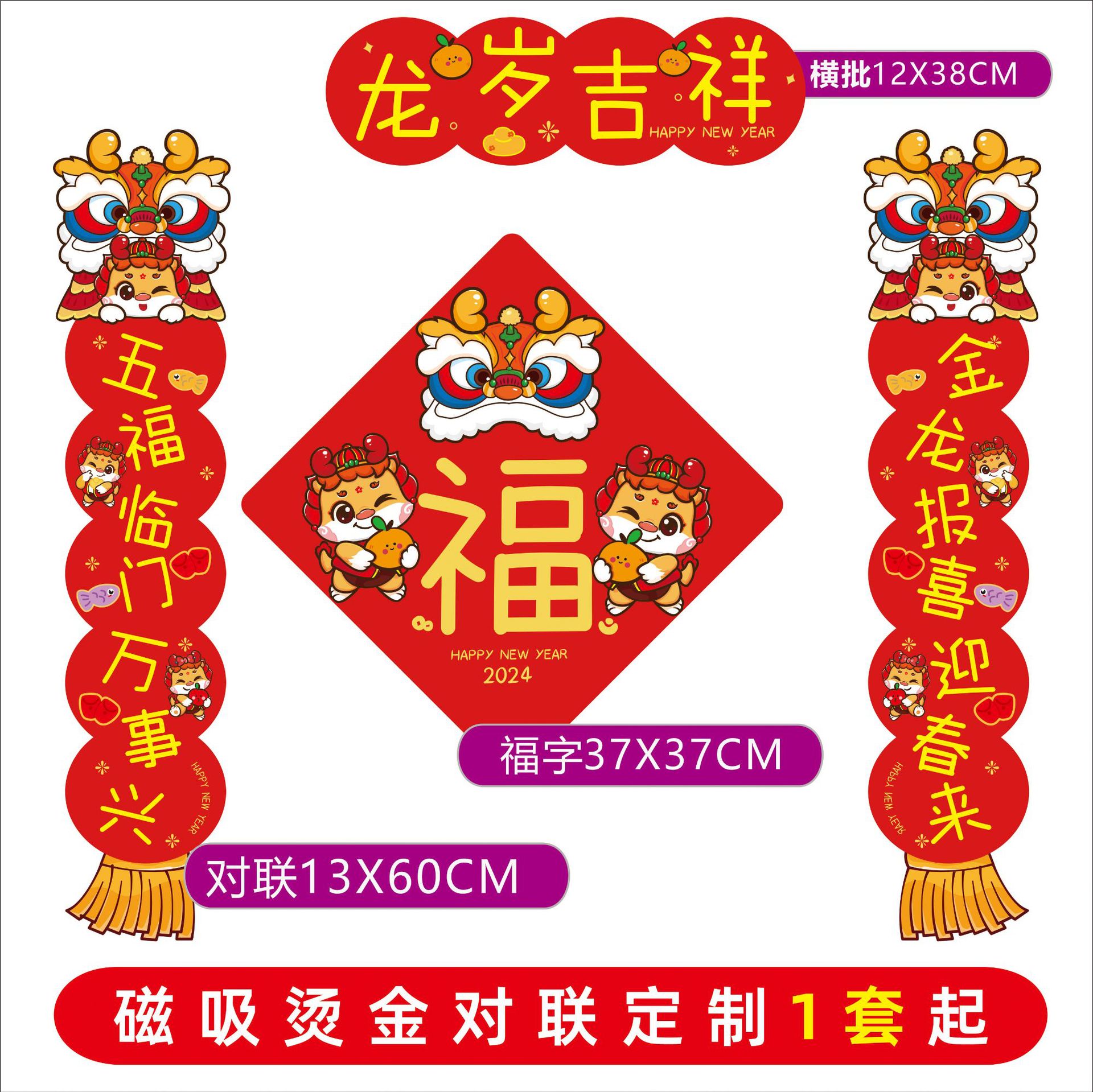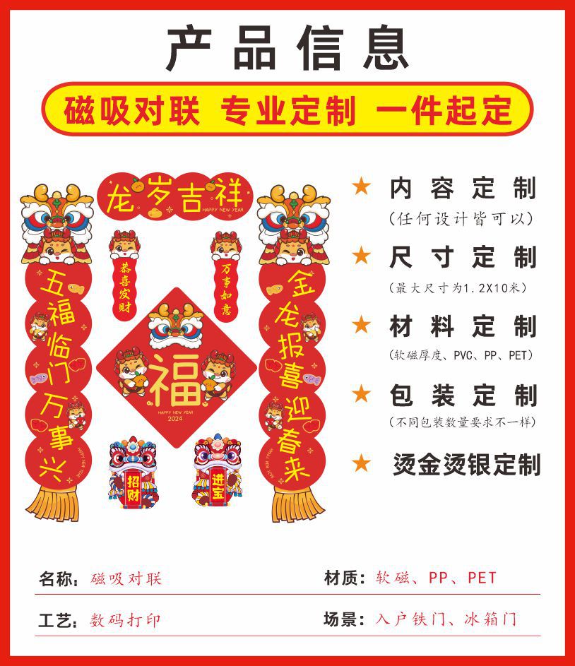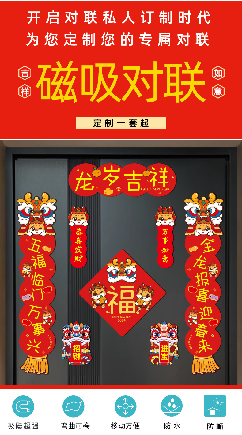 Magnetic Dragon Year Spring Festival Scrolls Couplets Suit Housewarming Fu Character Entry Door Stickers Housewarming Happiness New Year Spring Festival Magnetic Couplet