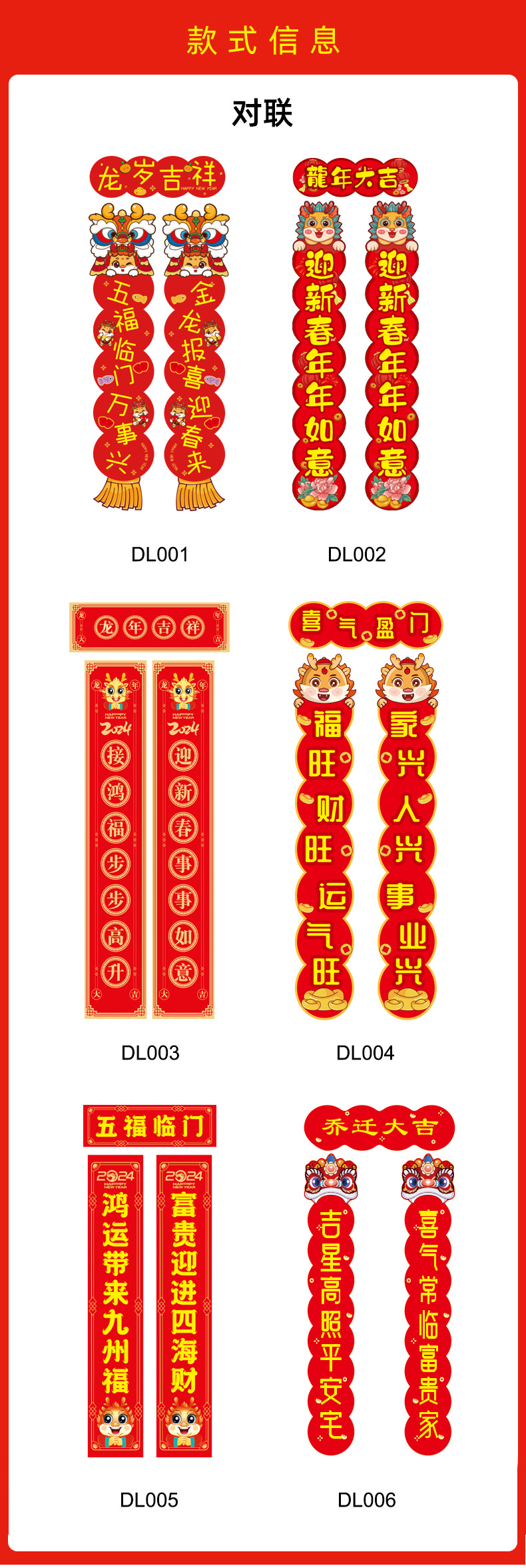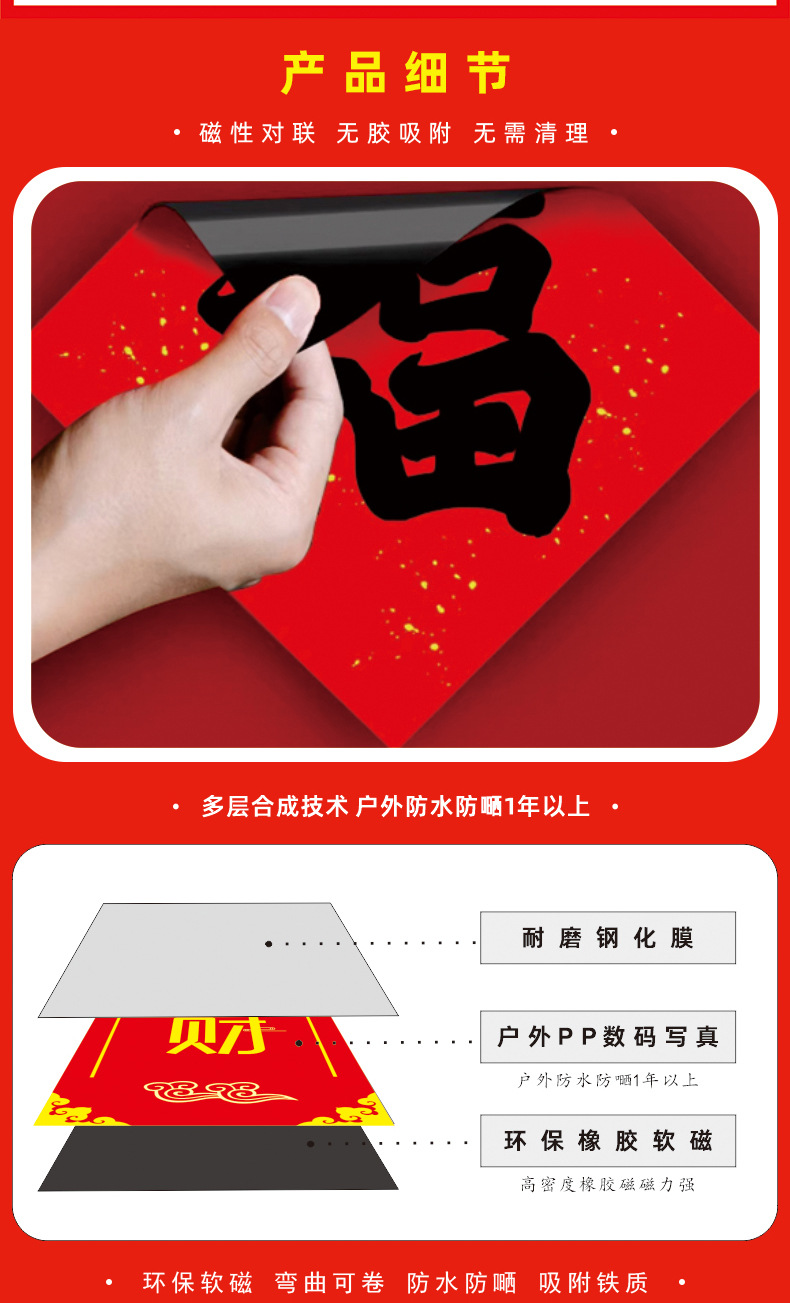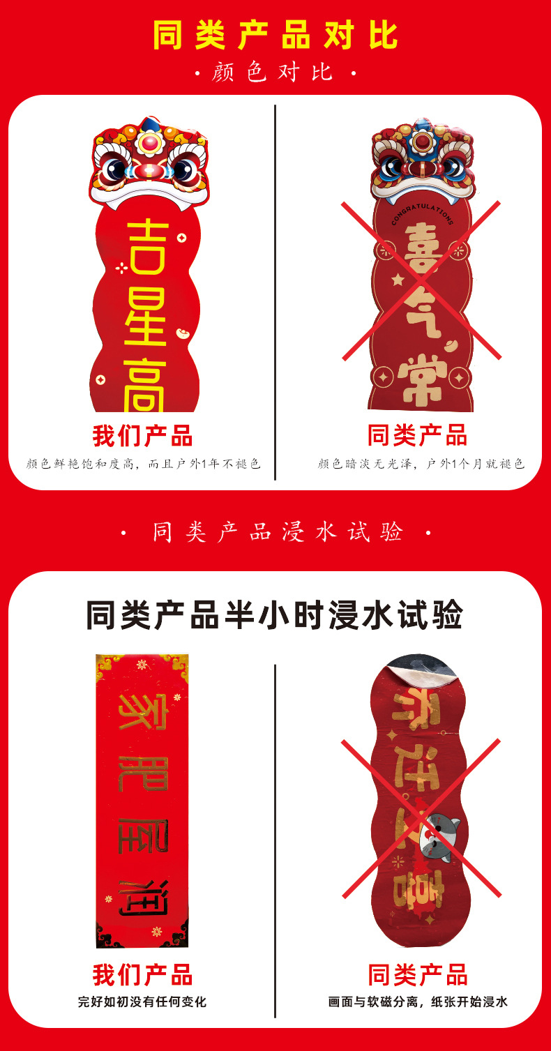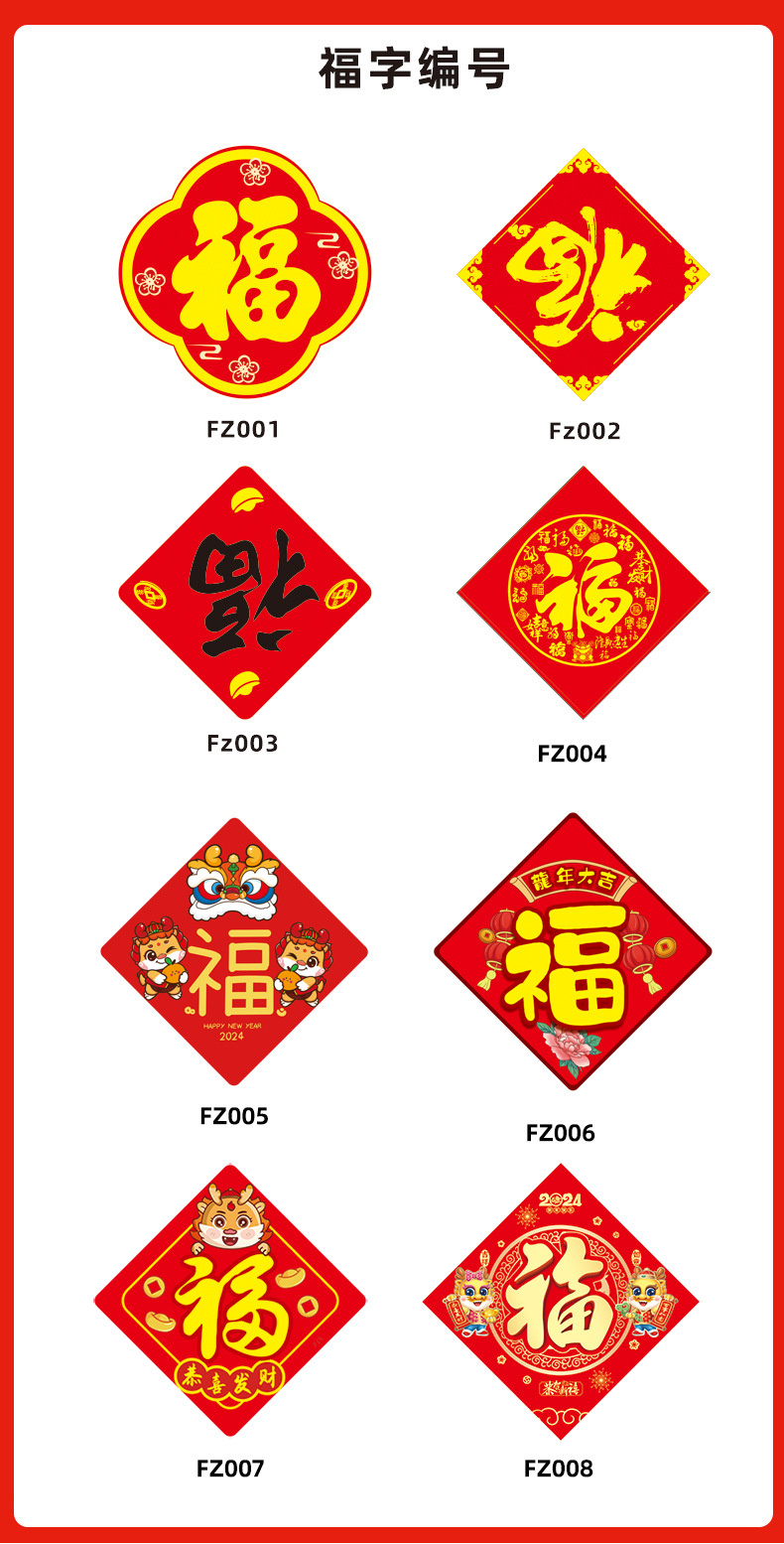 Magnetic Dragon Year Spring Festival Scrolls Couplets Suit Housewarming Fu Character Entry Door Stickers Housewarming Happiness New Year Spring Festival Magnetic Couplet
