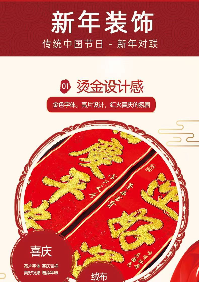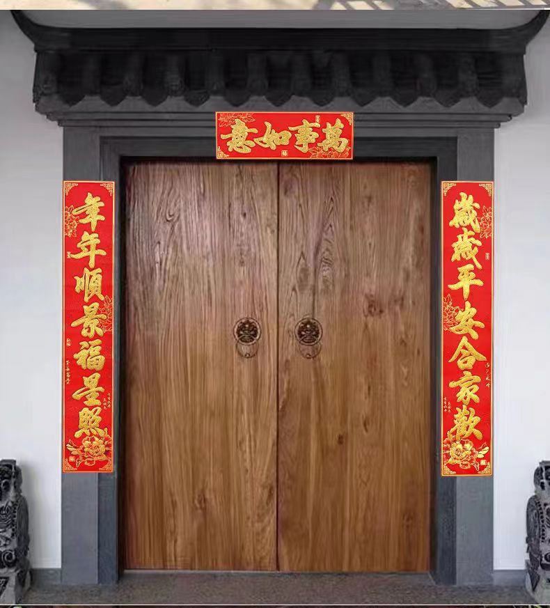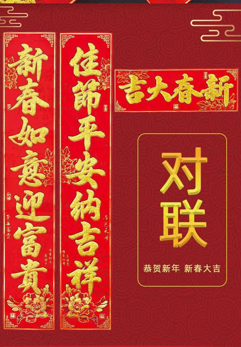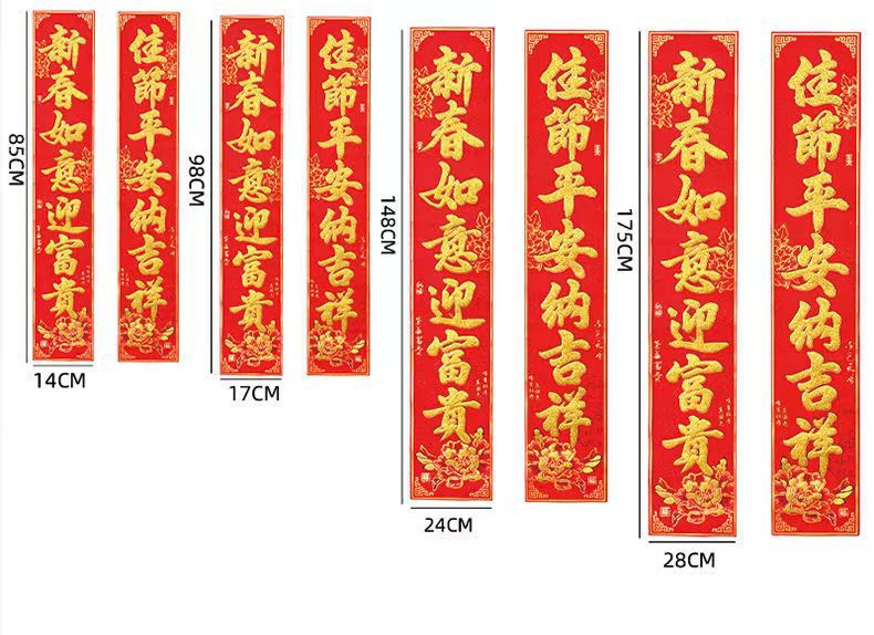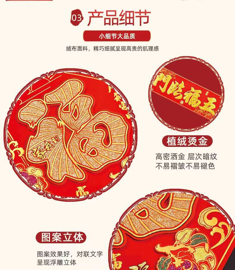 Processing 2023 Floral Design Adhesive Couplet Painting Gilding Suede Household Gold Word Gate New Year Painting Chinese New Year Stickers