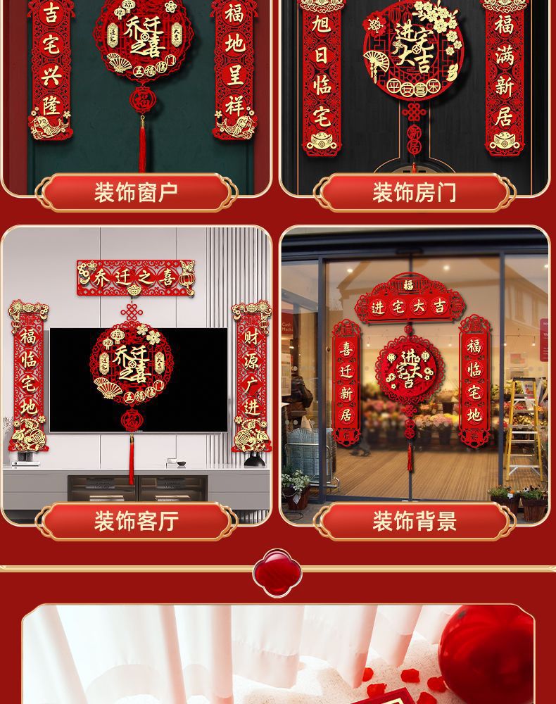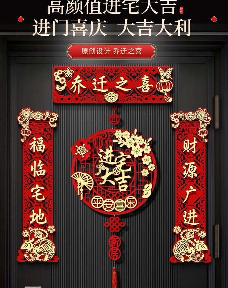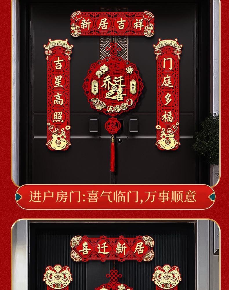 Magnetic Housewarming Couplet New House Decoration New House Pendant Moving Ceremony Entry Door Stickers Housewarming Happiness New House Couplet