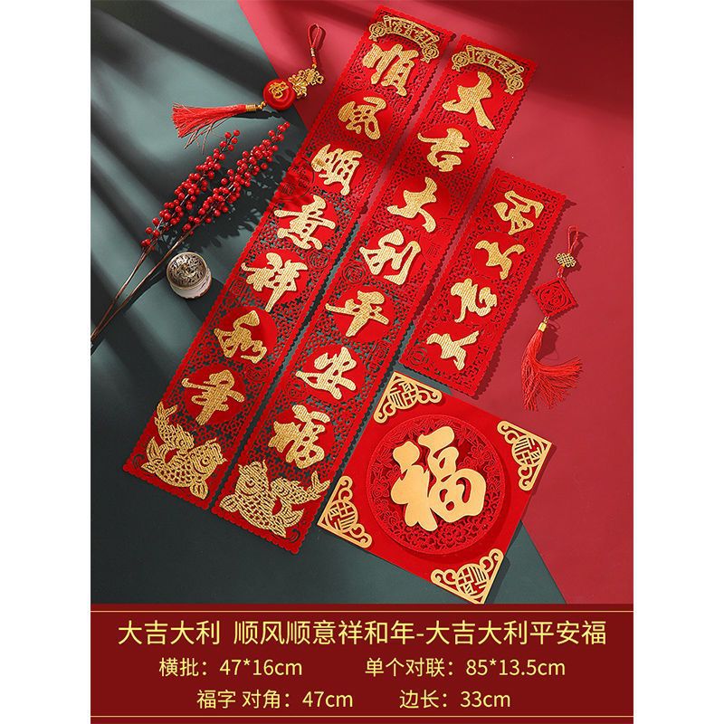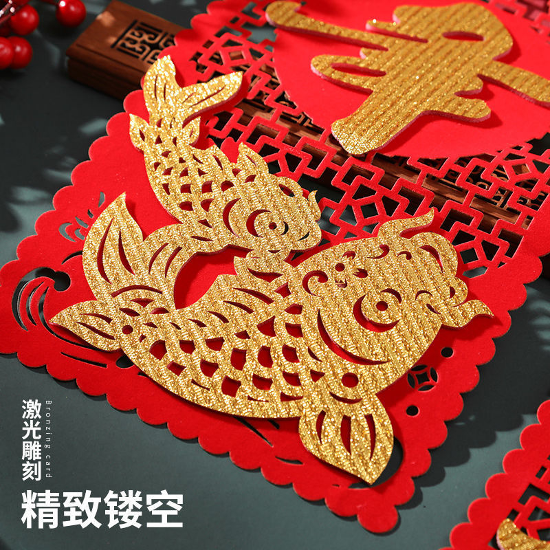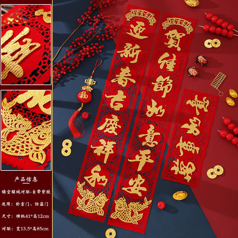 2024 Dragon Year Spring Couplets Household Gate Stickers Spring Festival Couplet New Year Housewarming Flocking Cloth Three-Dimensional Fu Character Gatepost Couplet