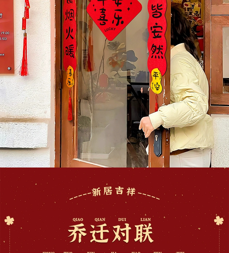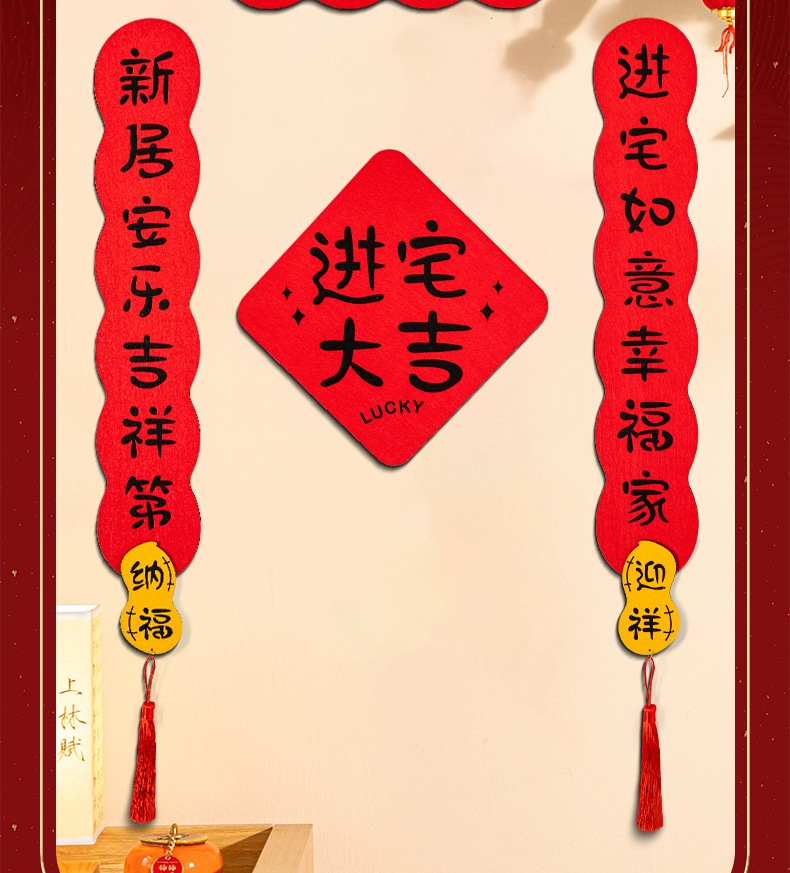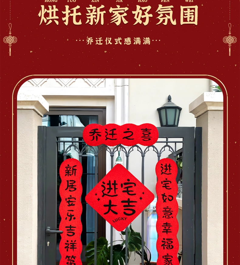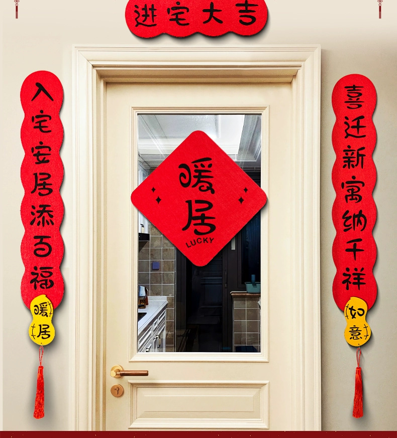 New Couplet Housewarming New Home Decoration Entry Door Stickers Moving House Felt Gatepost Couplet New Home Ceremony Supplies