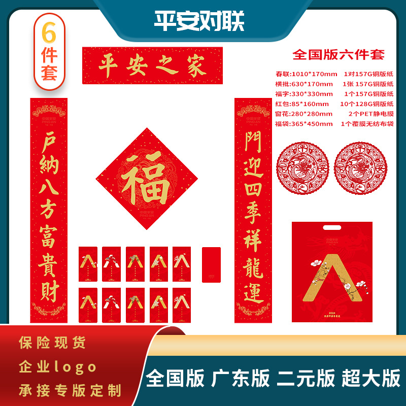 In Stock 2024 Dragon Year Ping An Insurance Couplet Gift Package Wholesale New Year Bank New Year Couplet Fu Character Suit Printed Advertising
