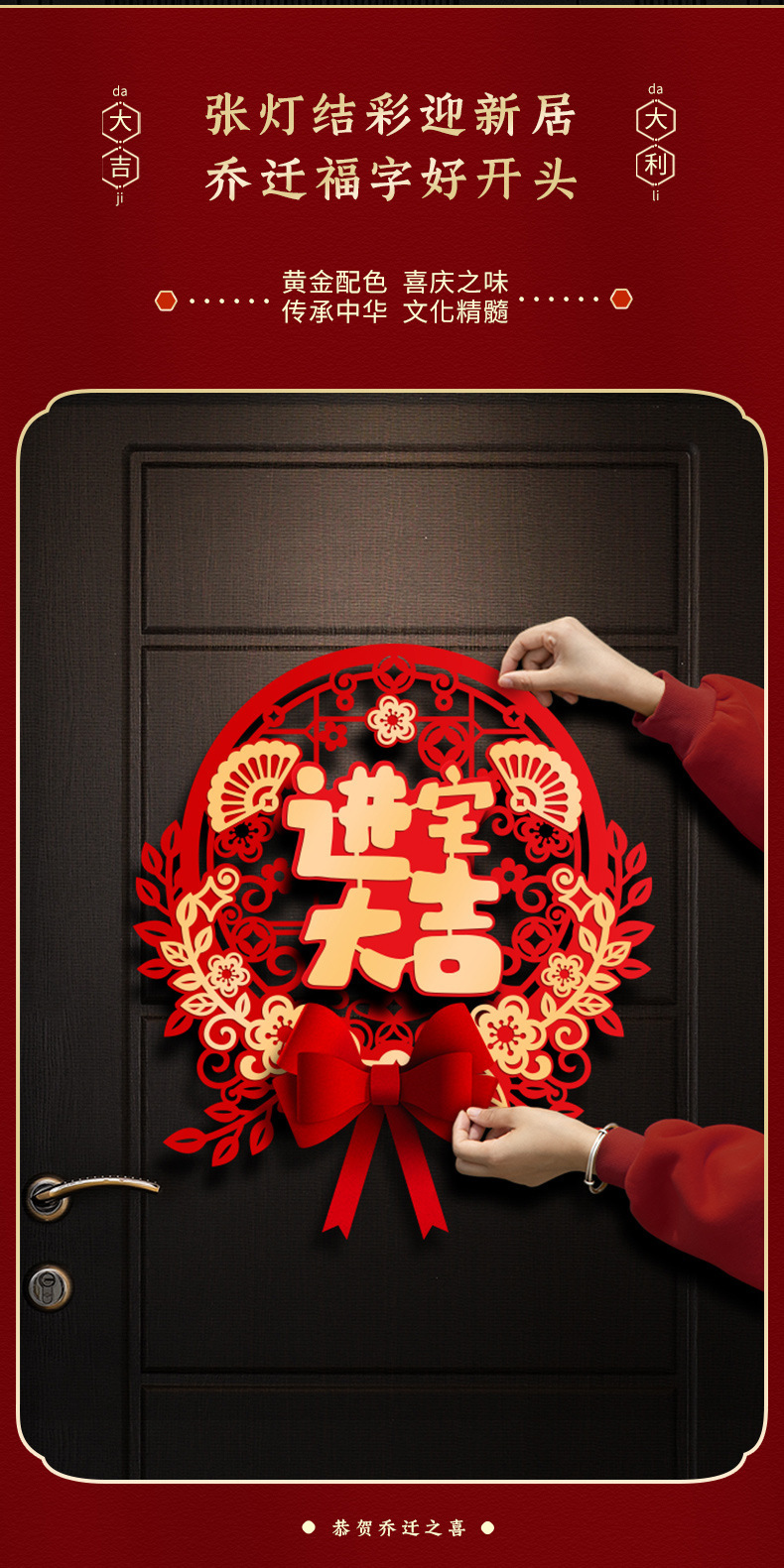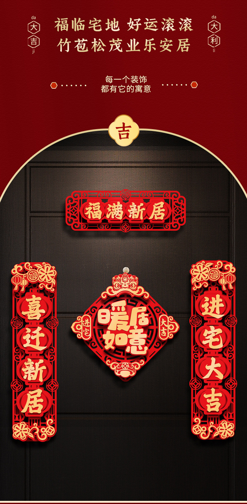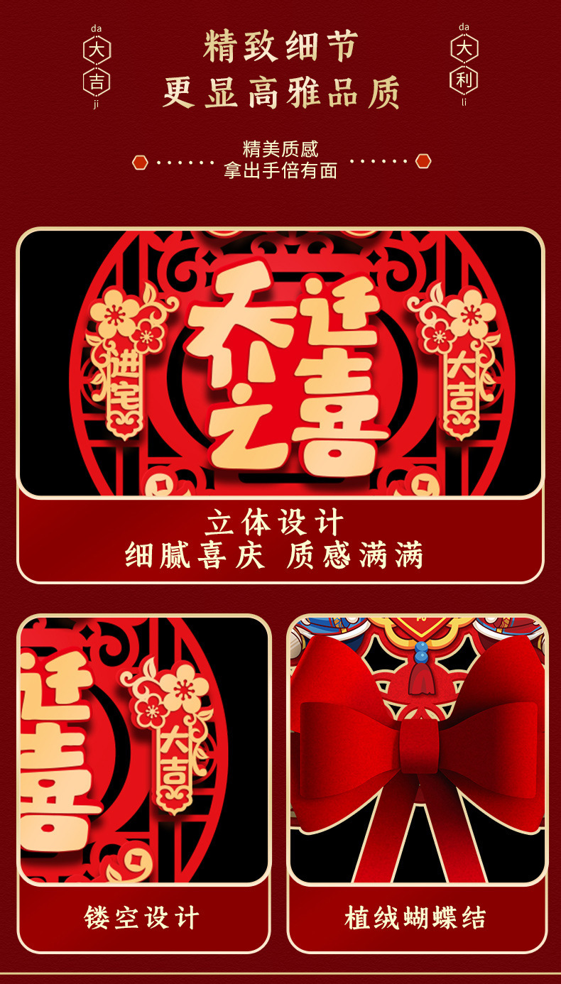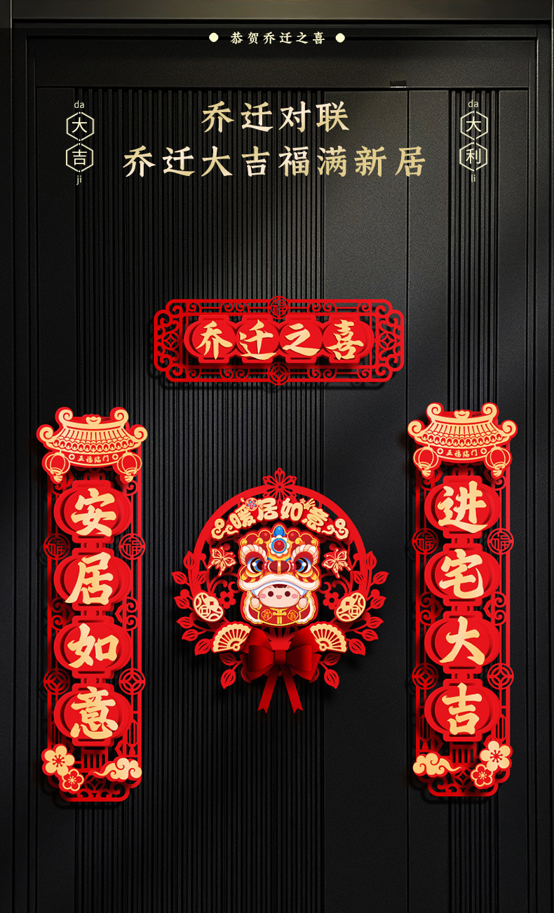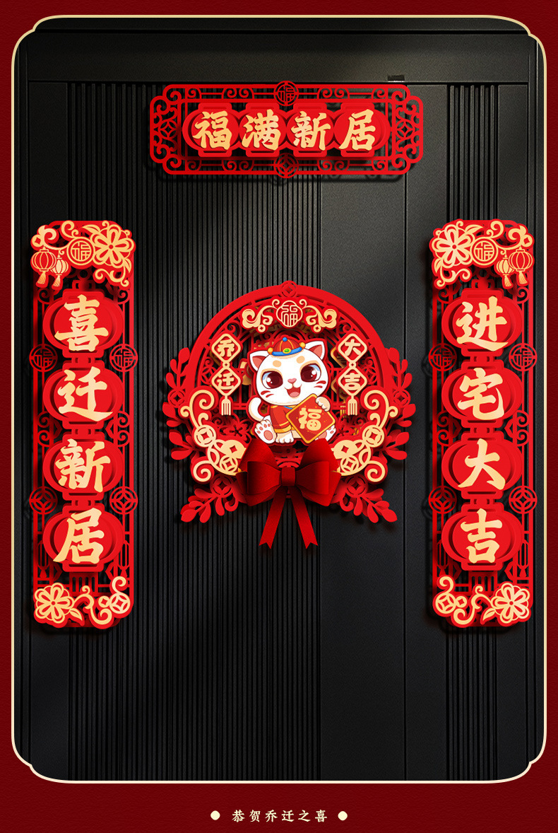 Fu Character Housewarming Happiness Flocking Three-Dimensional Couplet Package Moving New Home Ceremony Decoration Supplies Lucky Word Door Sticker