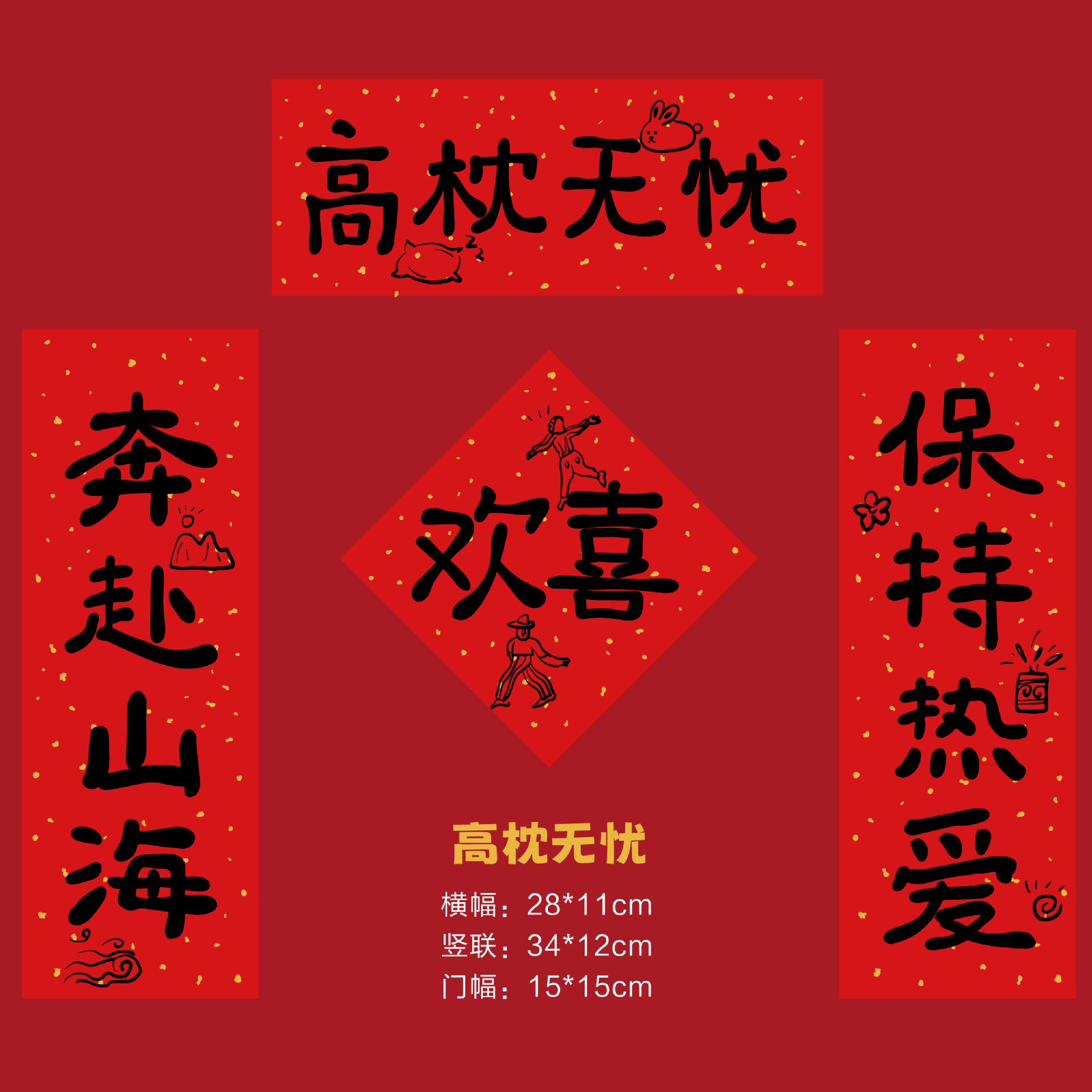 2024 Creative Retro Mini Text Couplet New Year Couplet Housewarming Chinese New Year Celebration Joyous Decoration for Young People Small Antithetical Couplet