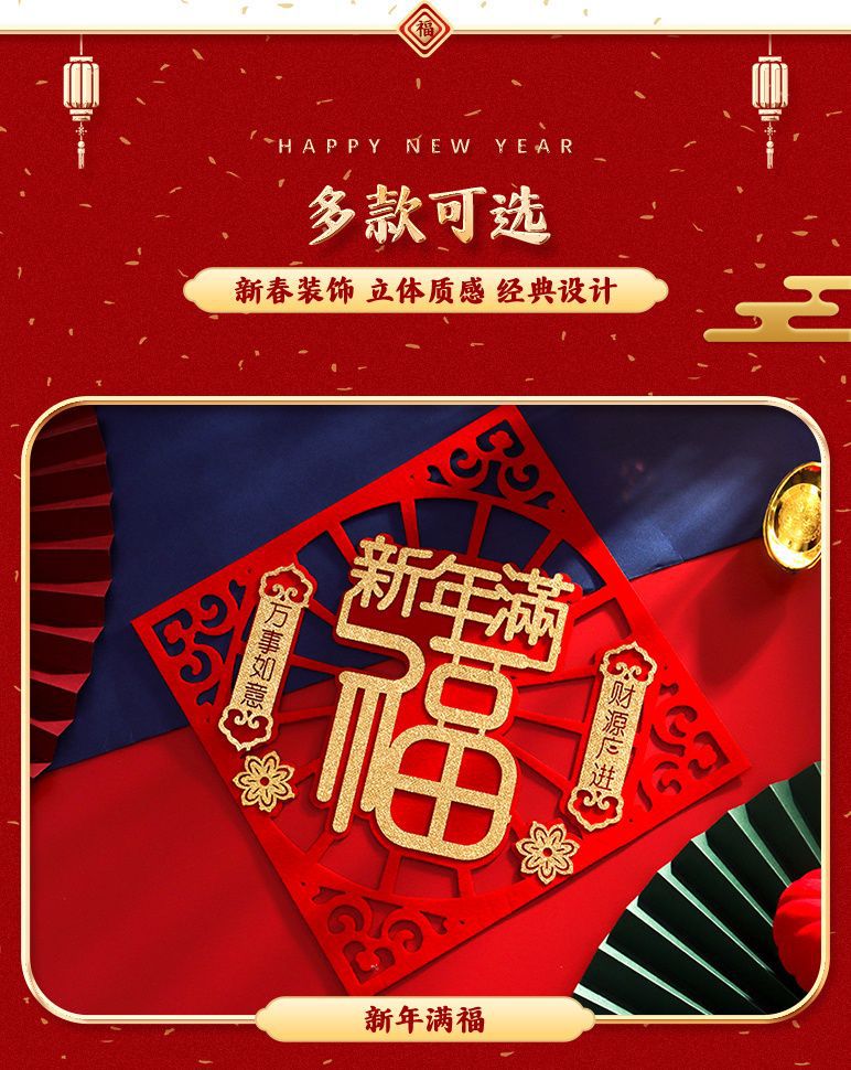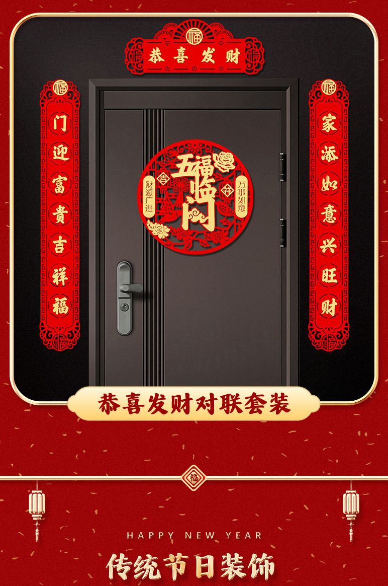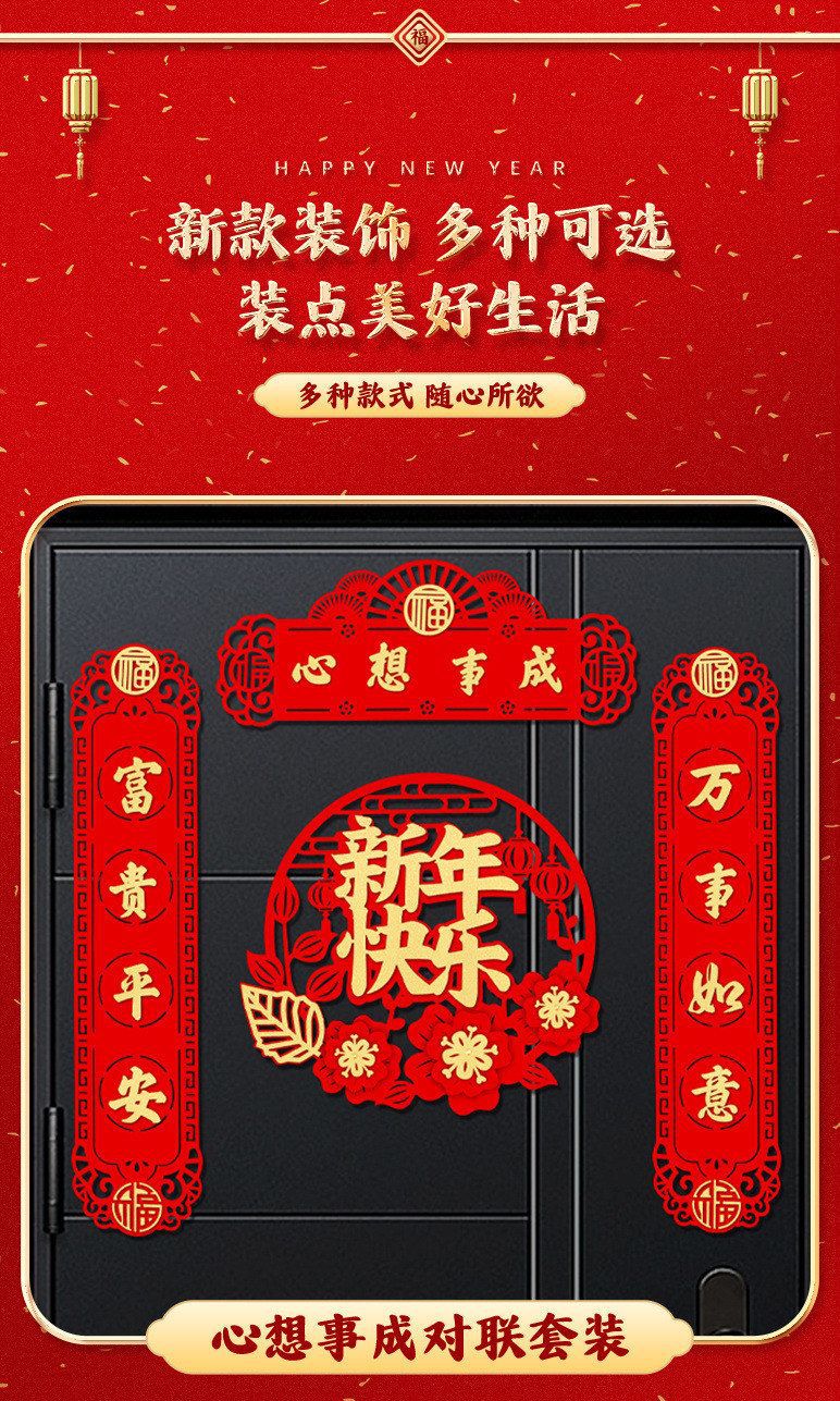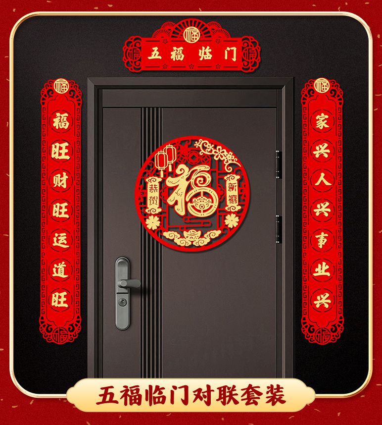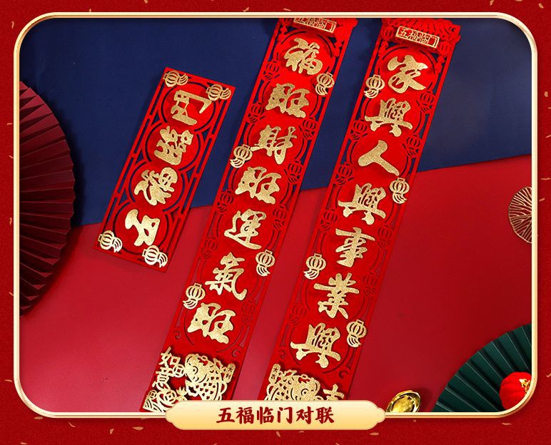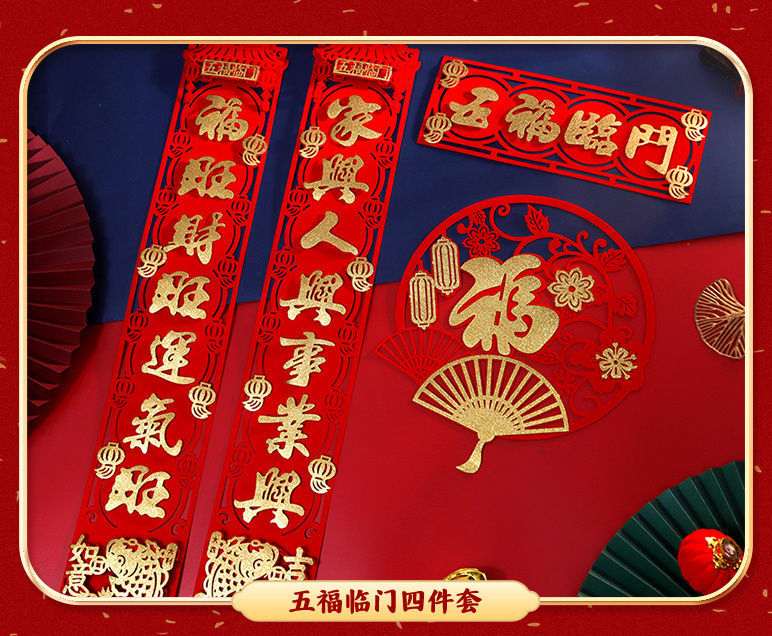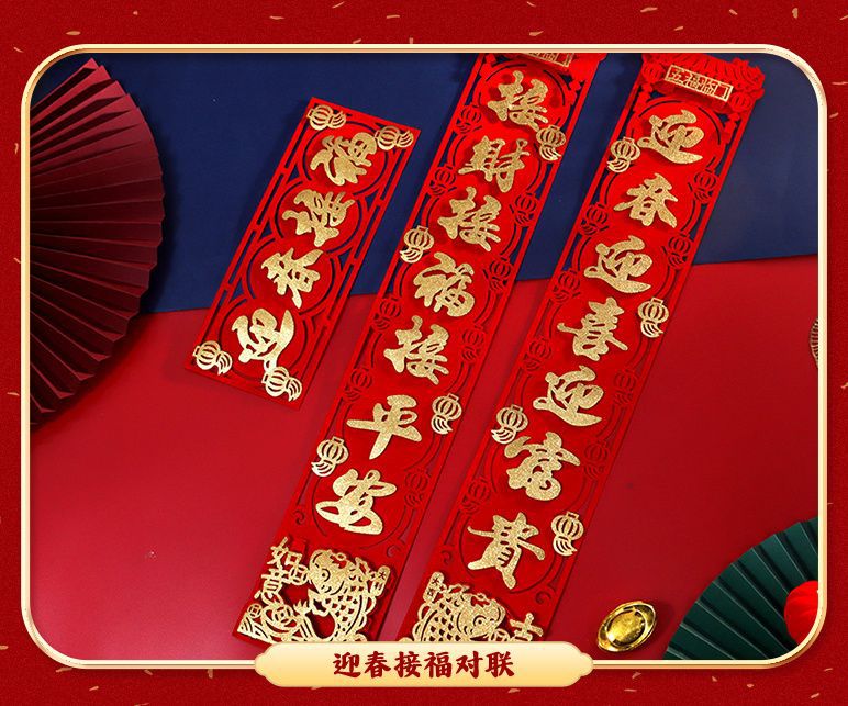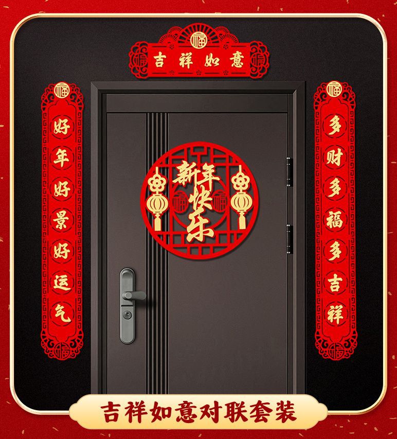 New Year Couplet Three-Dimensional Creativity New Year Couplet New Year Decoration Supplies Spring Festival Household Couplet Entrance Door Layout Lucky Word Door Sticker