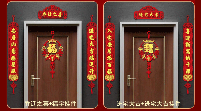 Flocked Cloth Housewarming Happiness to Lianjin Daji Gatepost Couplet Doufang Moving New Home Entrance Ceremony Door Sticker Layout