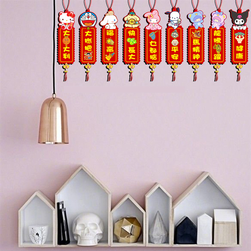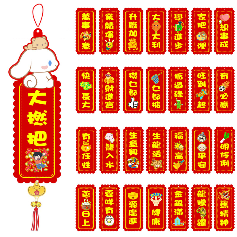 New Year Cartoon 3D Doll Embroidery Spring Festival Couplets Hong Kong Version Cantonese Four-Word Couplet Spring Festival Creative Flannel Decorative Pendant