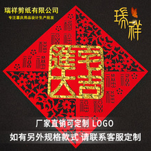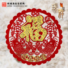 New Year Factory Window Flower in Stock Paper Cut with Fu Character Window Flower New Year Decorative Door Sticker Fu Character Static Sticker Wholesale