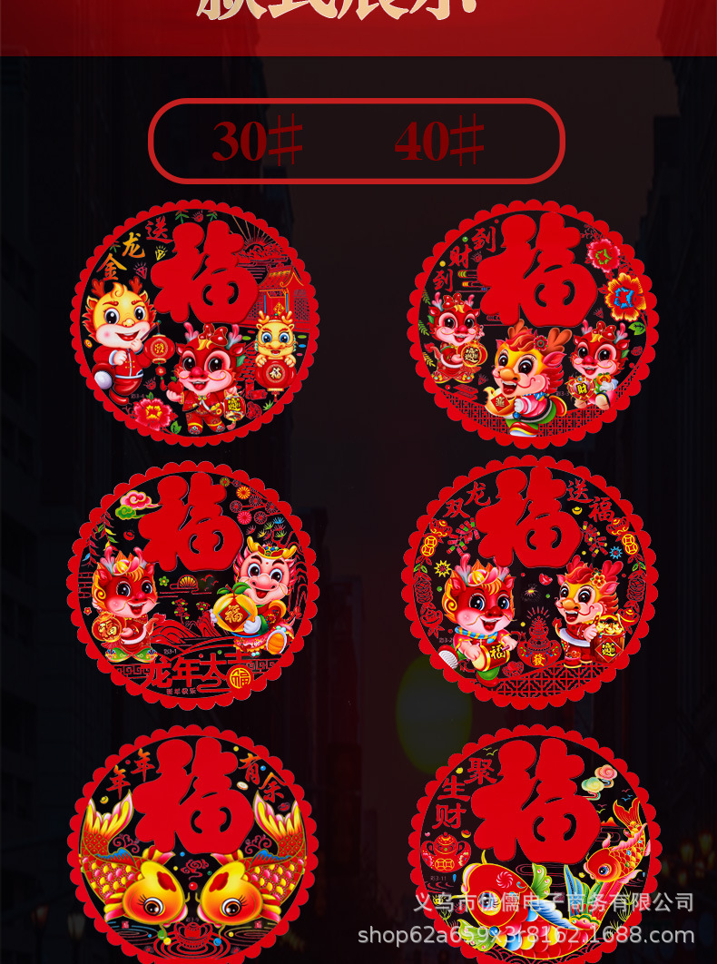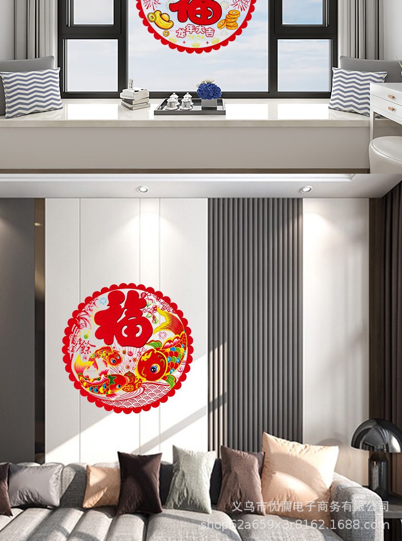 2024 Dragon Year Color Double-Sided Printing Electrostatic Window Decoration Electrostatic Window Sticker Paper-Cut Art Window Decoration Factory Wholesale