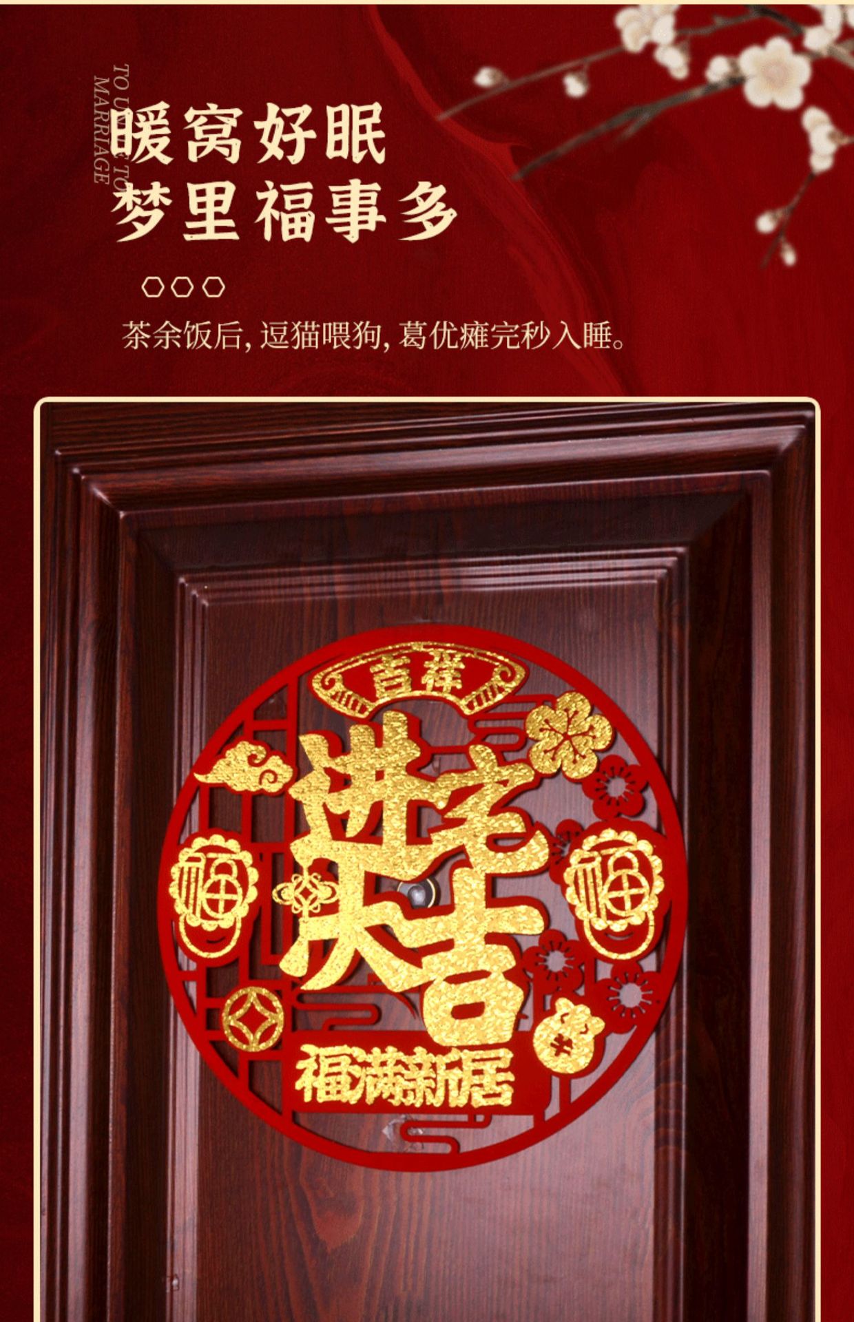 House Delivery Ceremony Decoration Supplies Door Sticker New House Fu Character Window Flower Welcome Home Auspicious in Entering Residence Housewarming Happiness Self-Adhesive