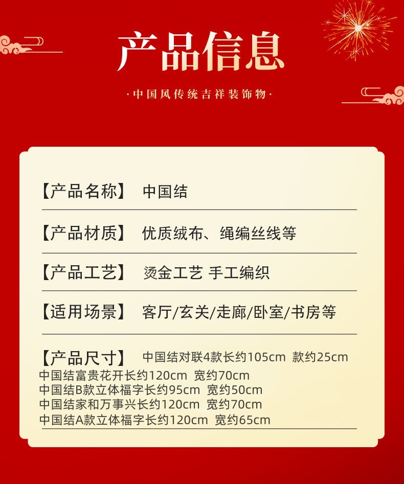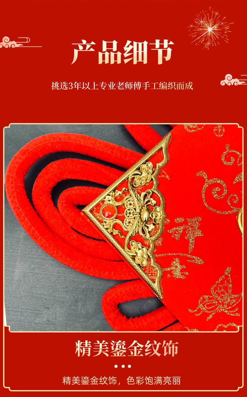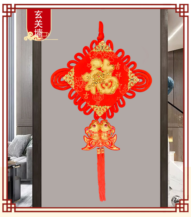 Large Flannel Chinese Knot Fu Character Couplet Pedant Living Room Inner Door Entrance Hanging Ornament New Year Goods Hanging String Factory Direct Sales