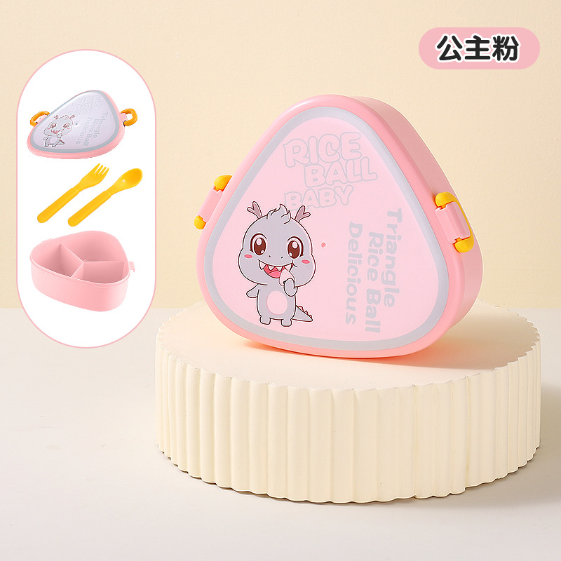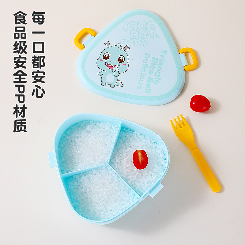 cute triangle children's lunch box compartment with lid sealed elementary school student bento contact lens case microwaveable heated lunch box