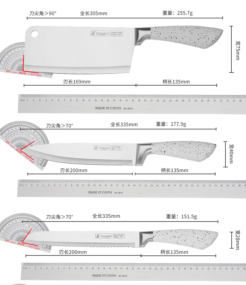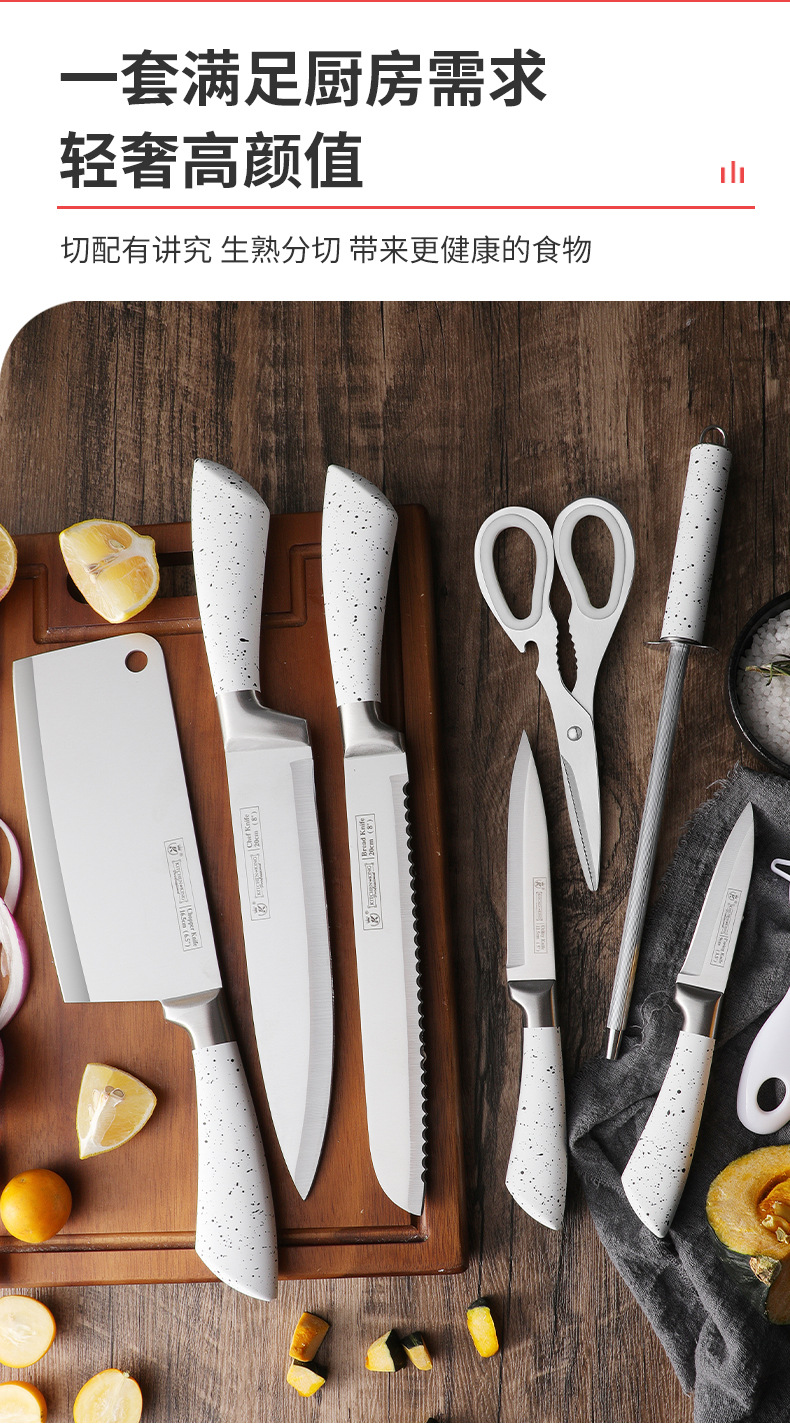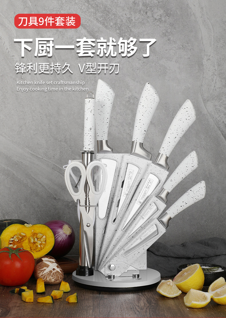 Jiameikang Foreign Trade Knives Suit White 9-Piece Knife Set Kitchen Stainless Steel Kitchen Knife Kitchen Knife Cross-Border Gift Knife Set
