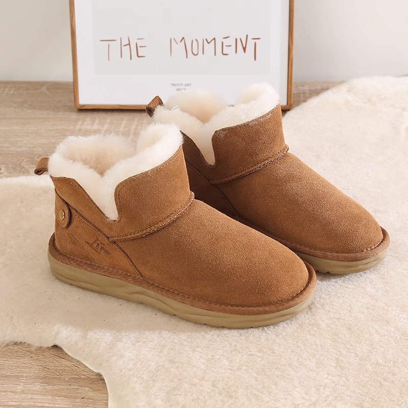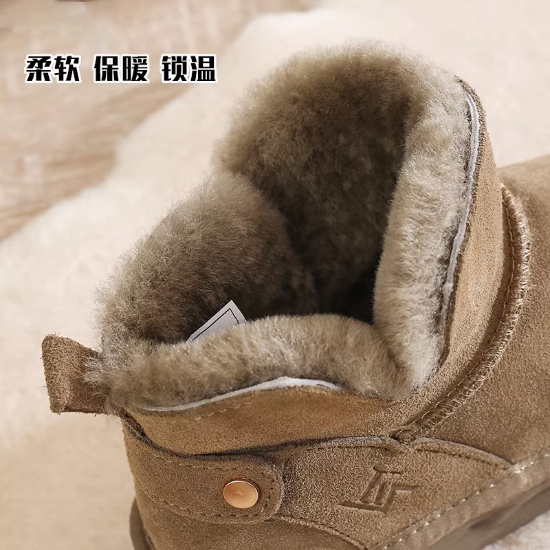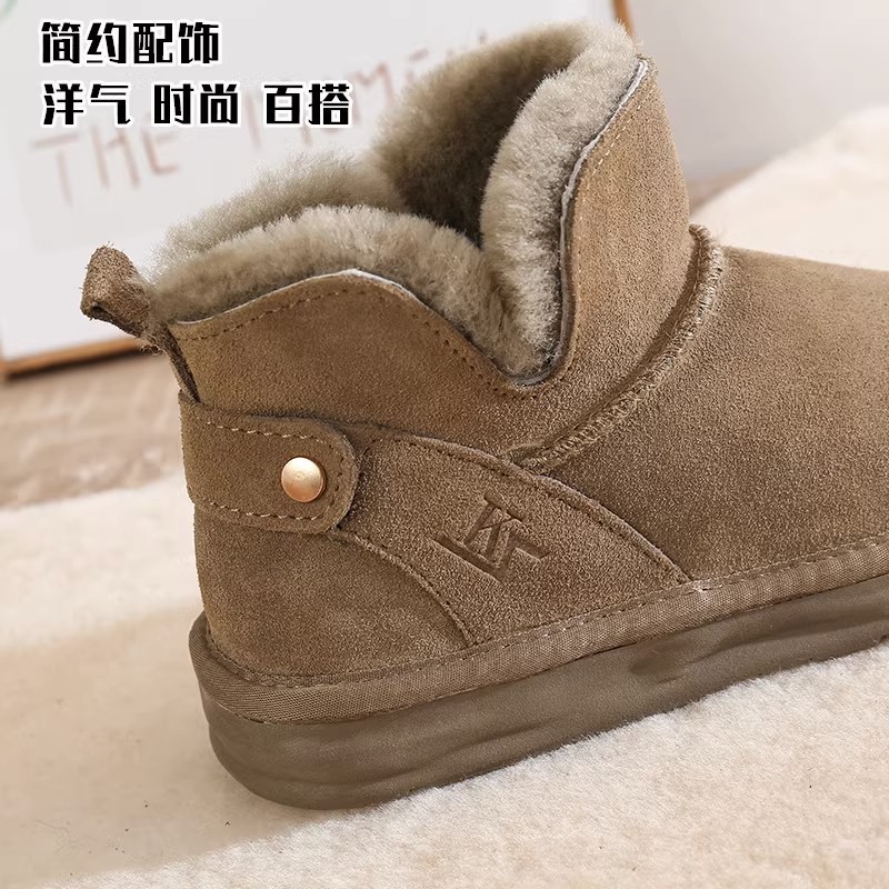Women's Snow Boots 2023 New All-Matching Short Boots Fleece-lined Thickened Winter Soft Leather Fleece Warm Bread Cotton Shoes