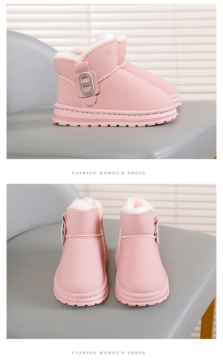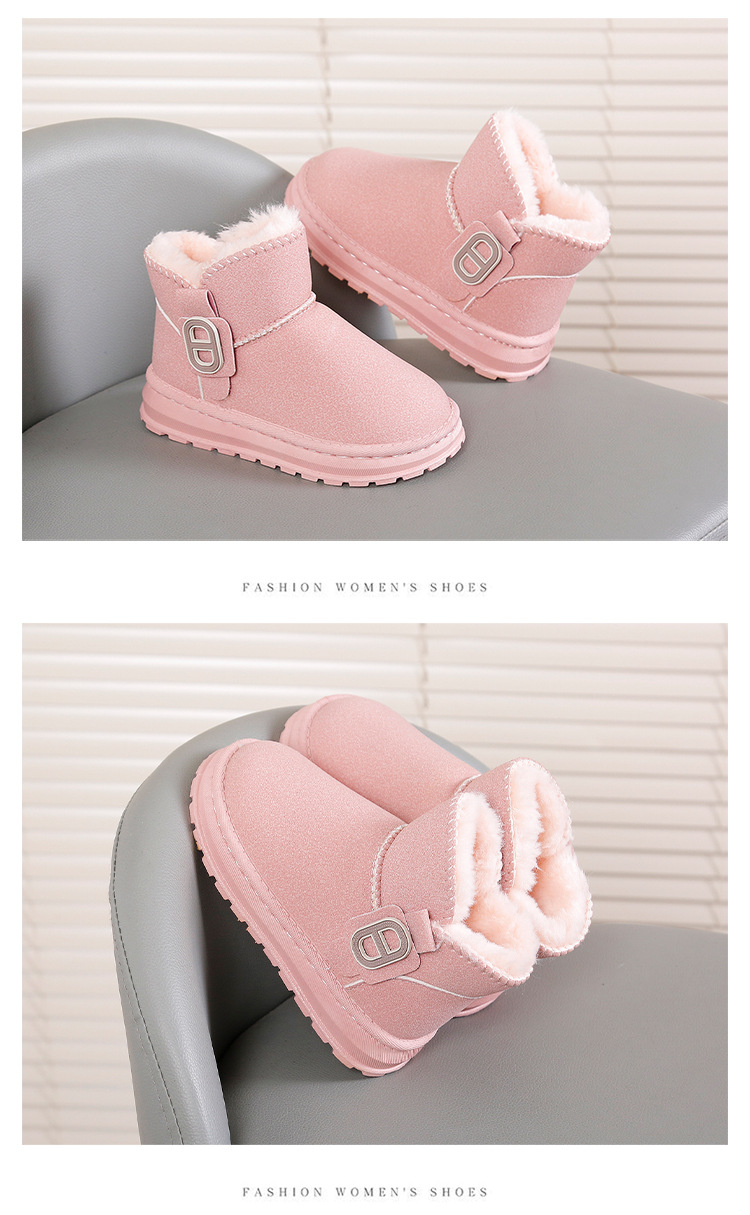 2023 Children's Snow Boots Girls' Short Boots Winter Boys and Girls Fashion Boots Medium and Big Children Internet Celebrity Fleece-Lined Cotton Boots Tide