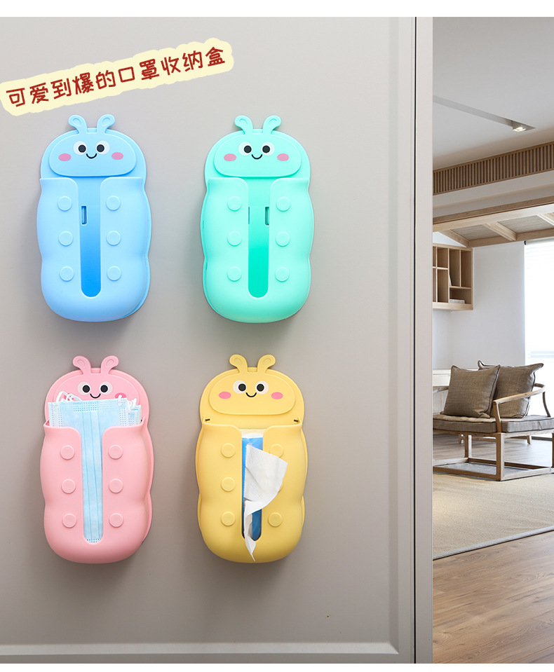Punch-Free Wall Hanging behind the Door Mask Storage Household Entrance Respirator Solid Color Deposit Box Tissue Box Storage Fantastic
