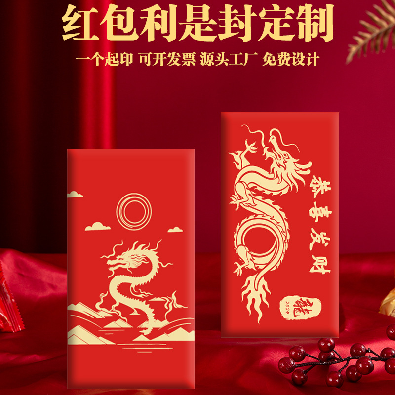 Creative New Year of the Dragon Red Envelope Custom Lettering Opening Profit Seal Customized Logo Fu Character Creative Good Luck