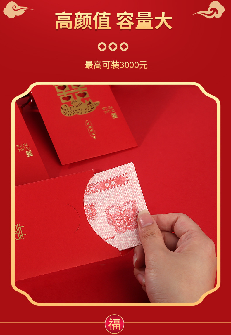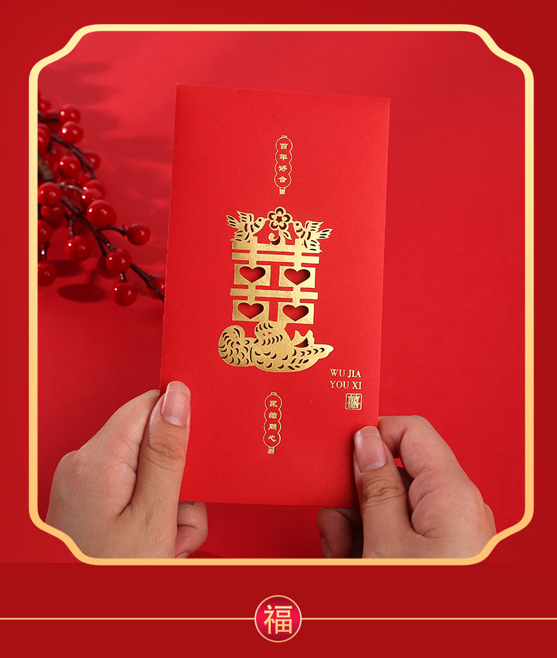 Wedding Red Packet Li Weifeng Customized Gilding Xi Decorations Return Gift with Member Lucky Money Customized Wedding Hundred Yuan Red Pocket for Lucky Money