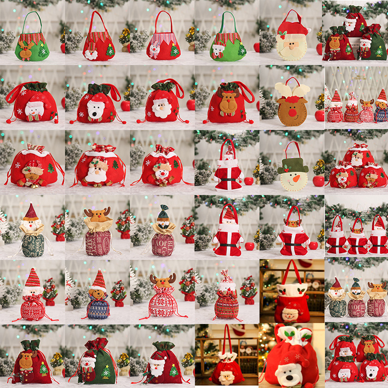 Hot Sale Christmas Gift Creative Personality Bear Apple Packaging Candy Bag Flannel Fabric Christmas Handbag