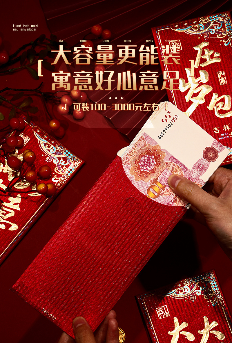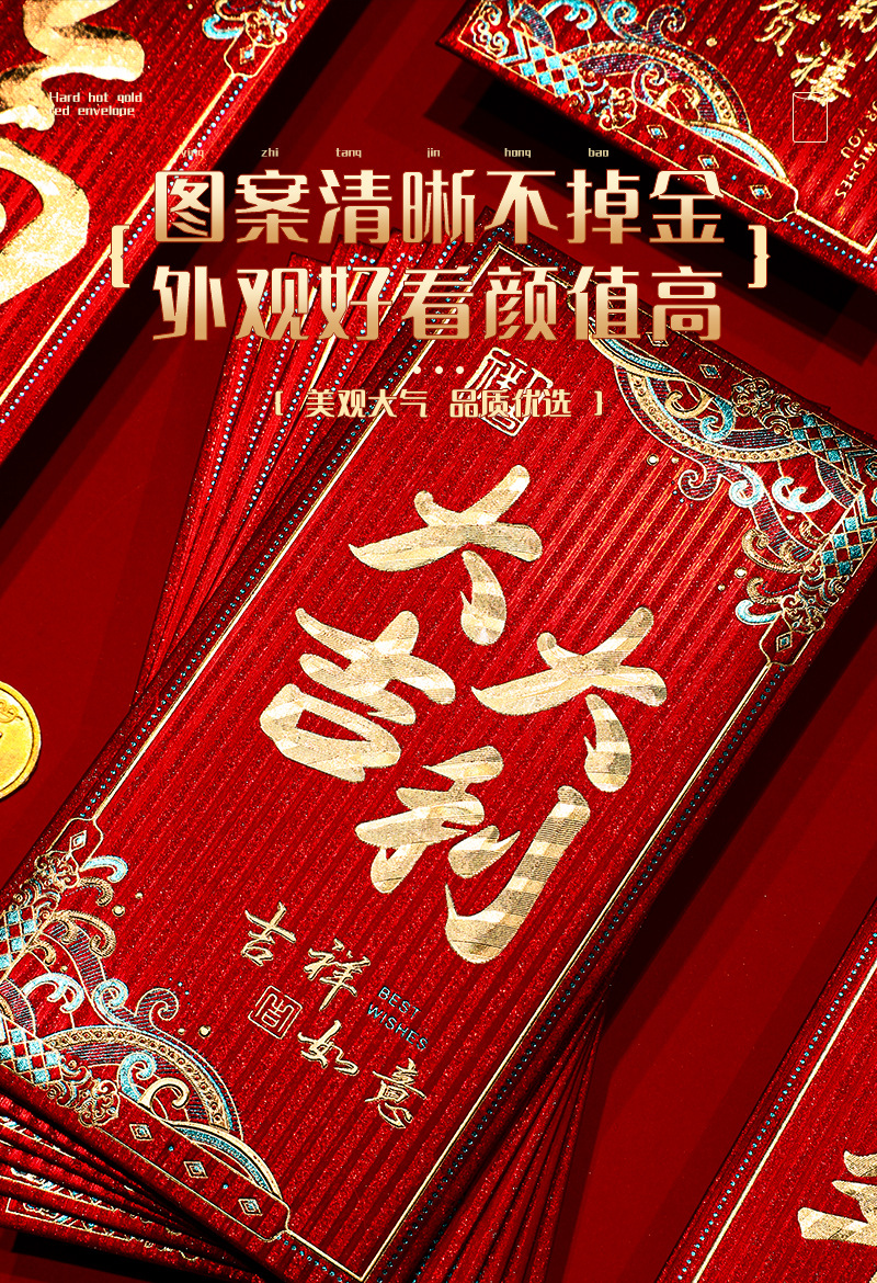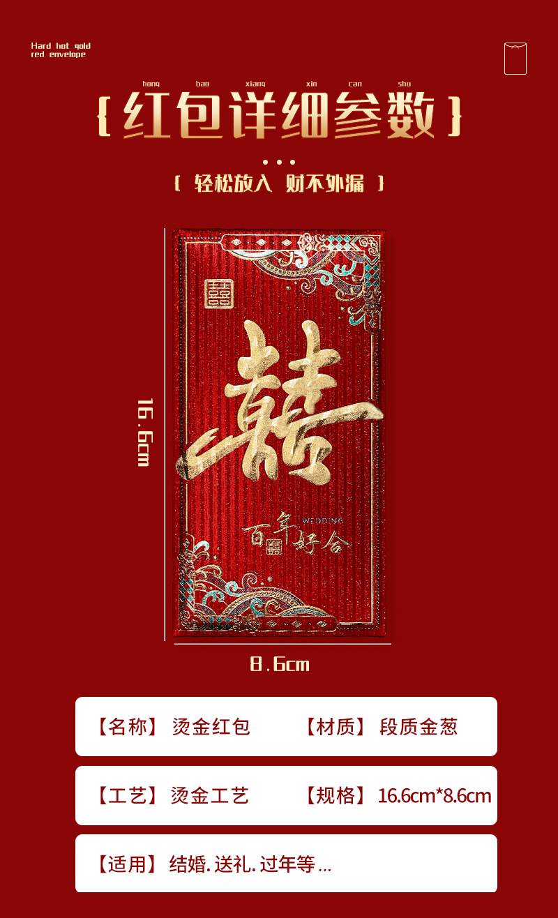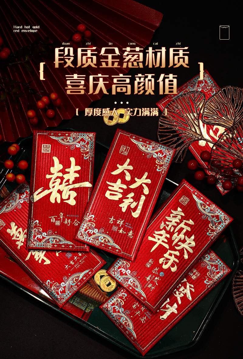 Chinese Style New Year Universal Atmosphere Gold Leaf Xi Character Lucky Thousand Yuan Gift Blessing New Year Gift Red Envelope for the Year of the Dragon