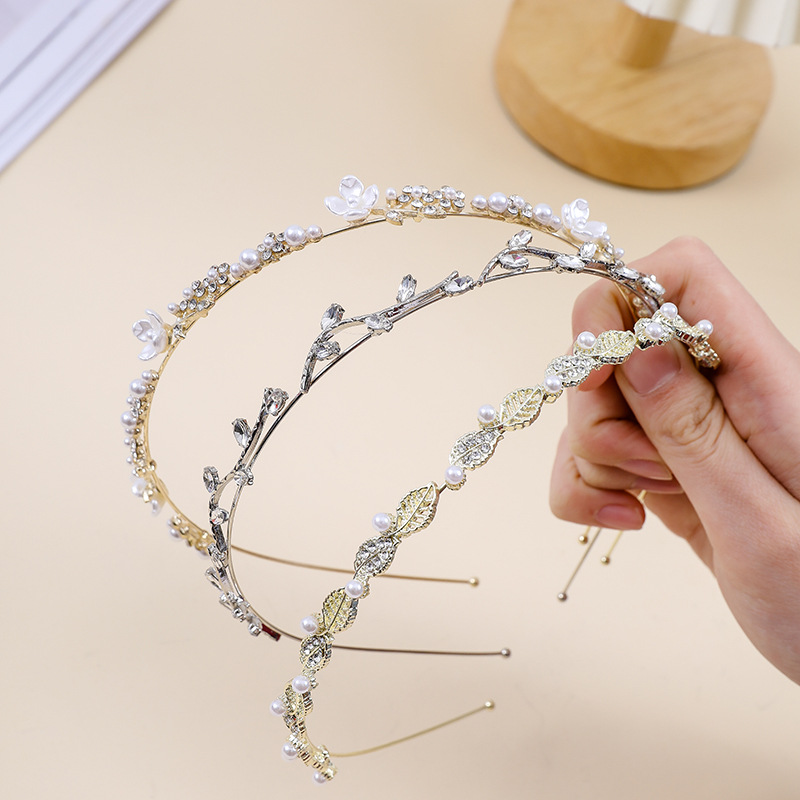 fairy temperamental female hair hoop simple thin edges alloy rhinestone pearl headband non-slip hairpin internet celebrity ins hair accessories
