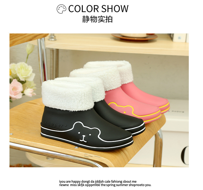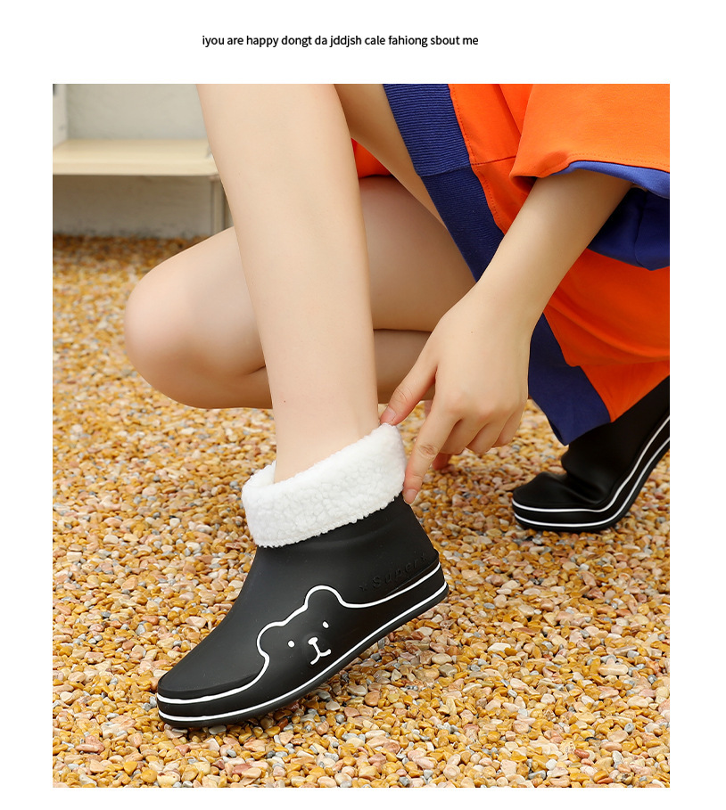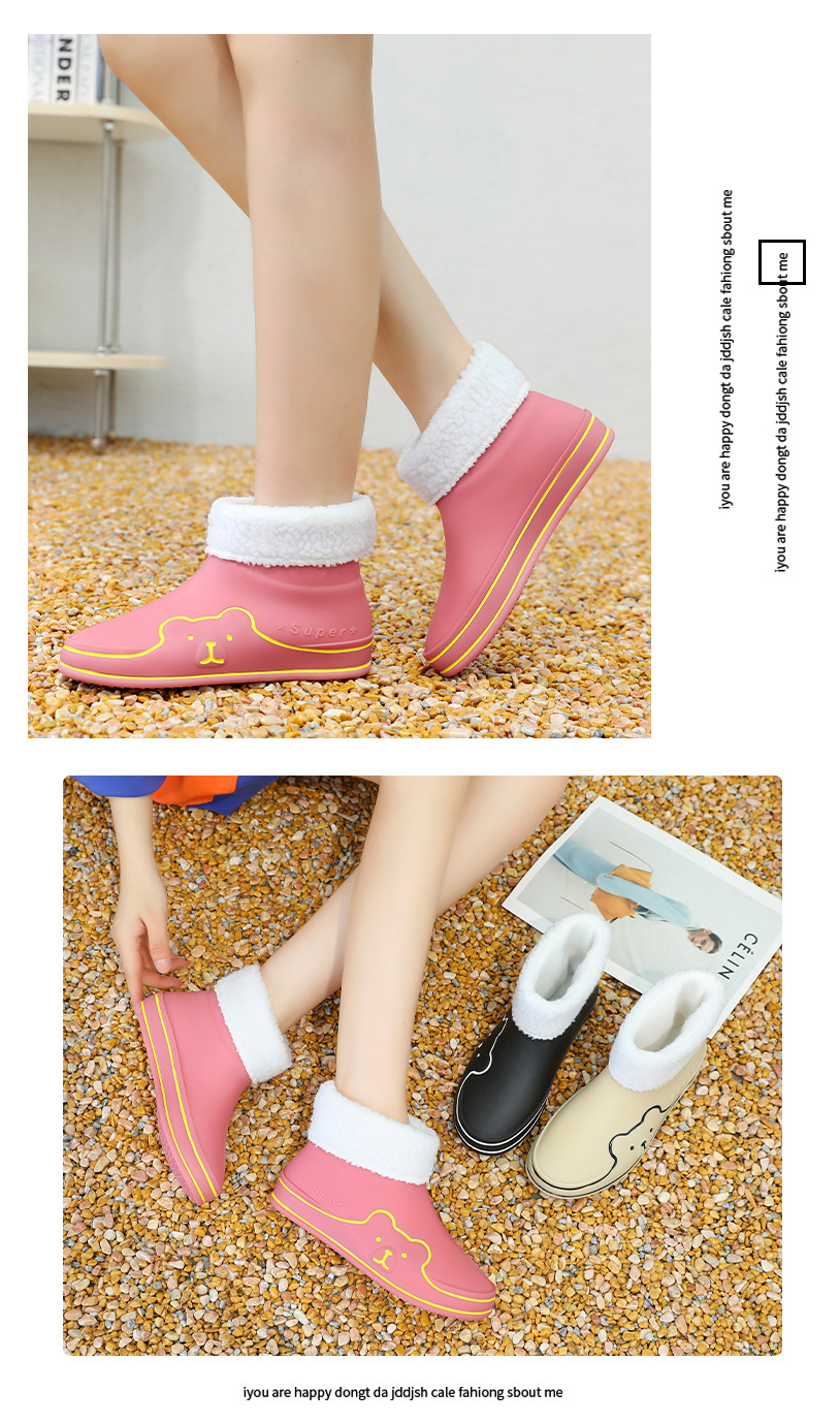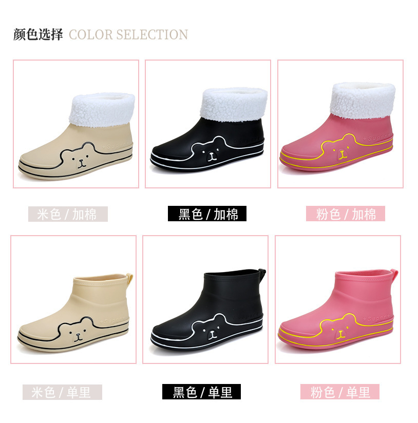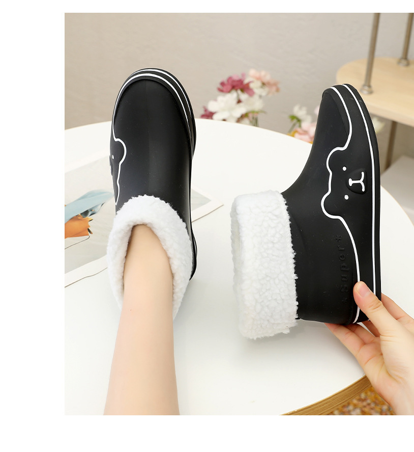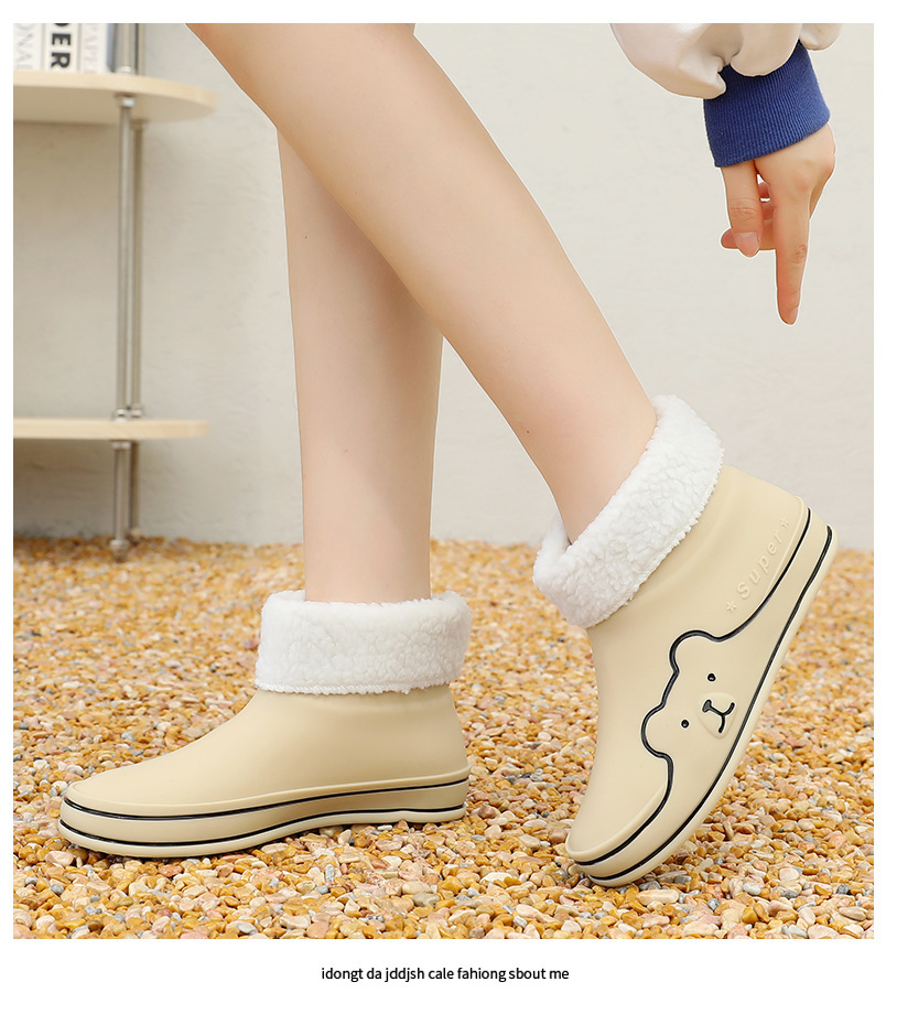 Autumn and Winter New Rain Boots Cute Women's Fashionable Warm Cotton-Padded Rain Shoes Non Slip Outdoor All-Match Cartoon Rain Boots for Students