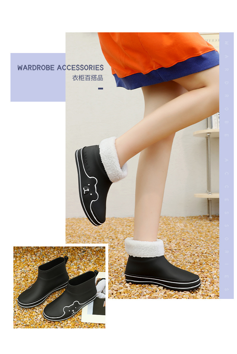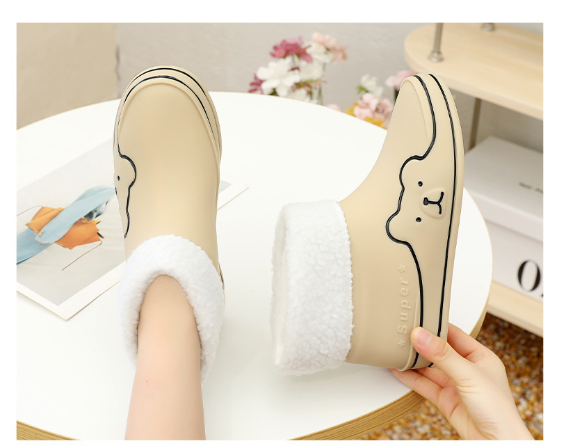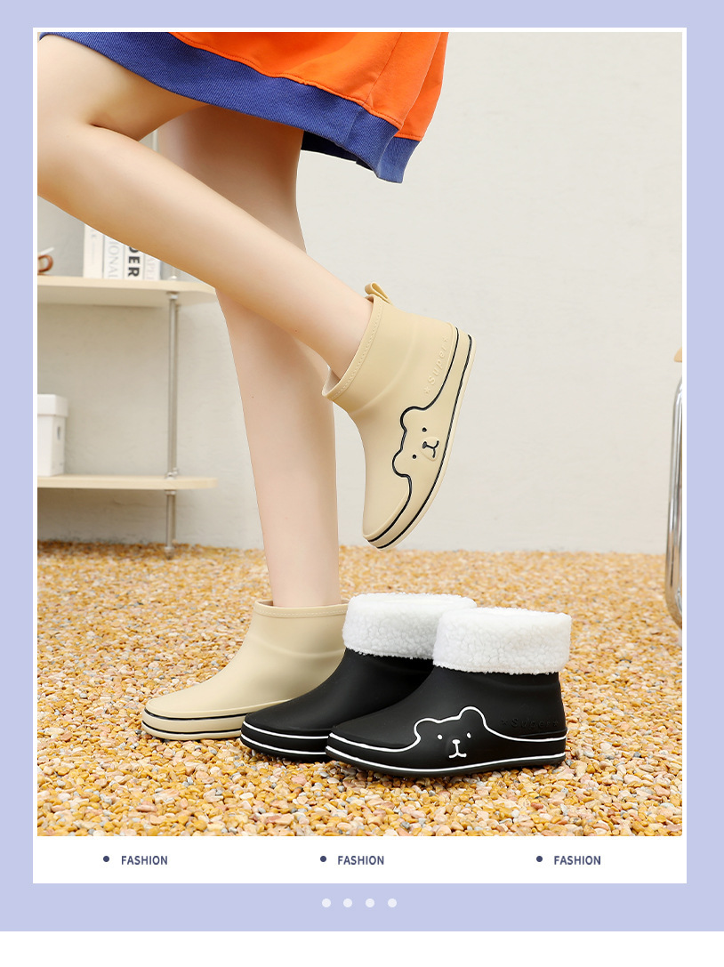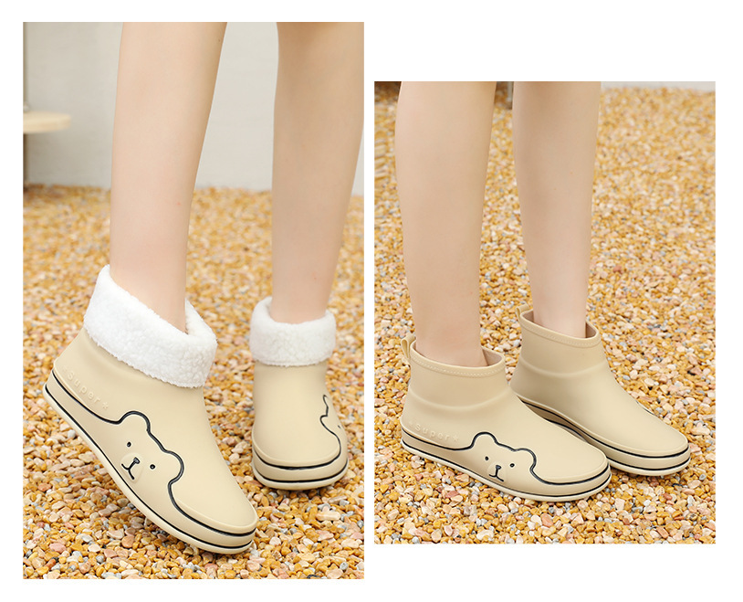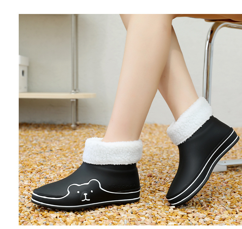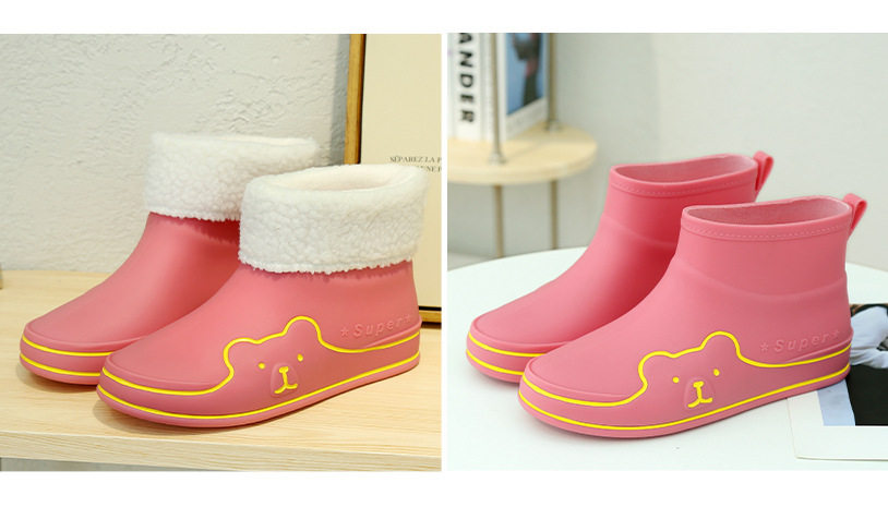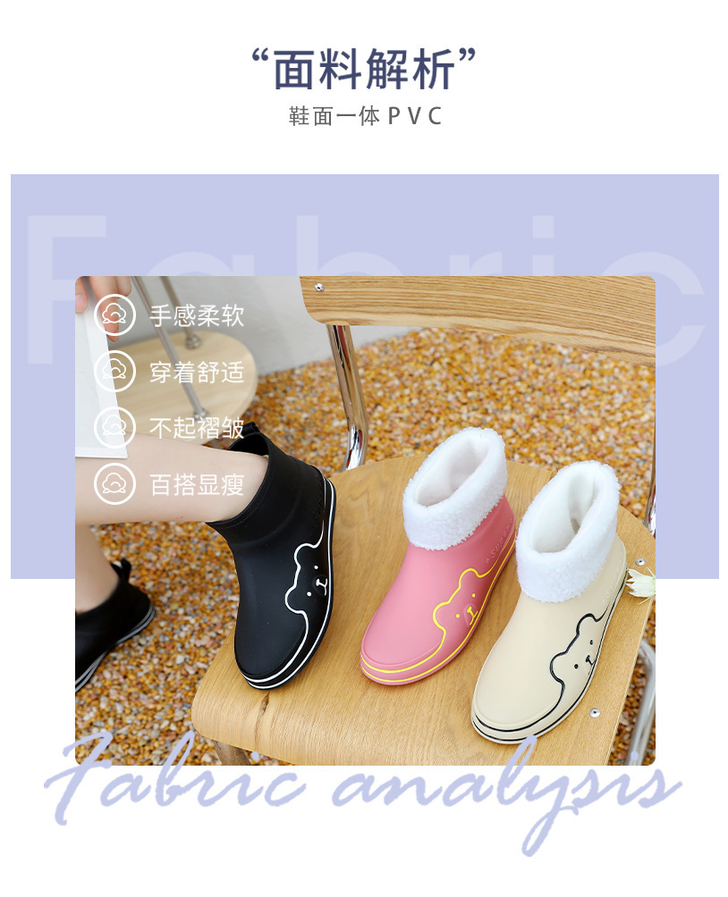 Autumn and Winter New Rain Boots Cute Women's Fashionable Warm Cotton-Padded Rain Shoes Non Slip Outdoor All-Match Cartoon Rain Boots for Students