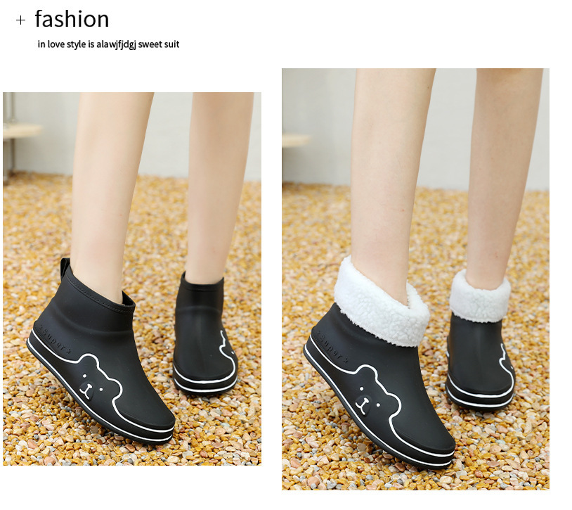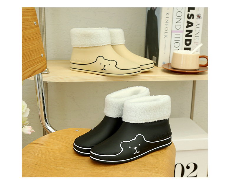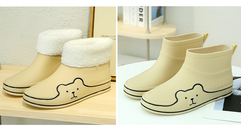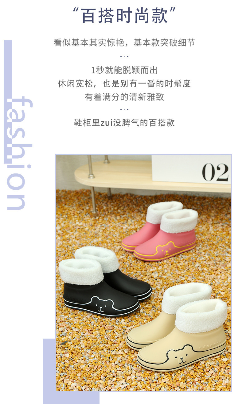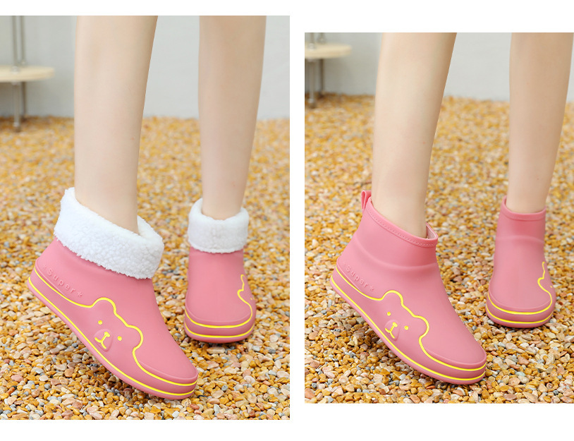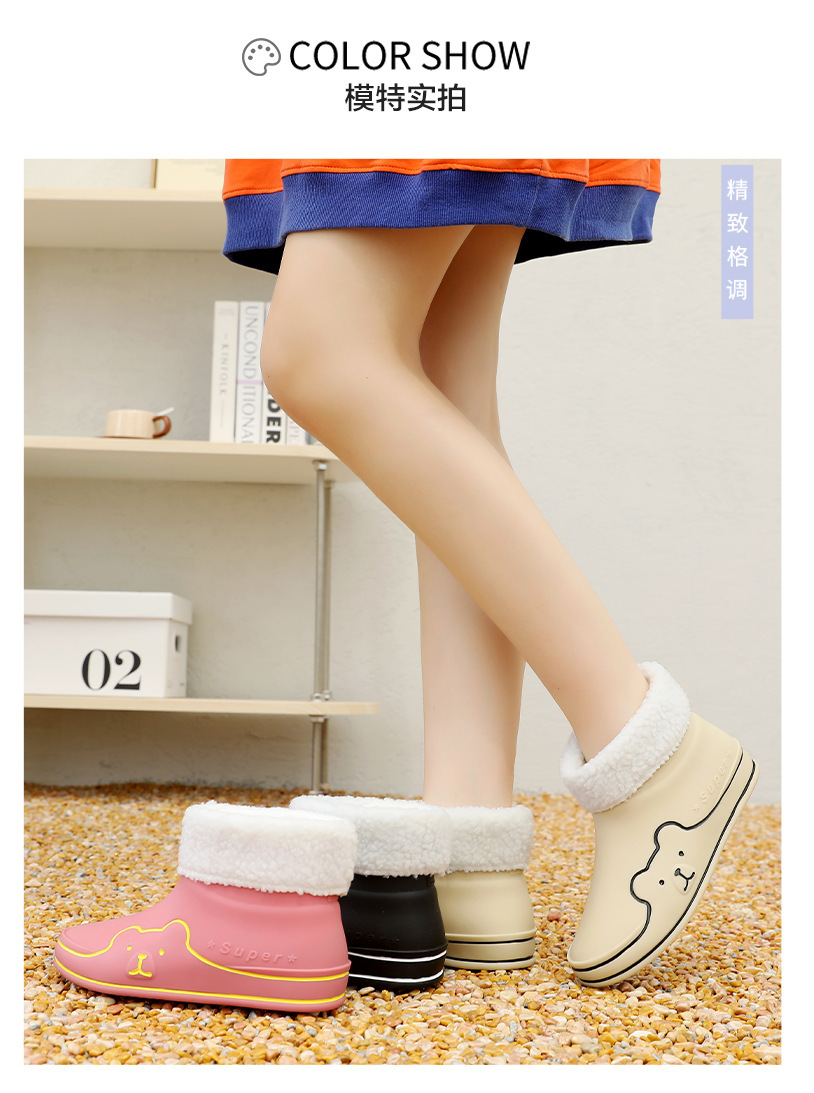Autumn and Winter New Rain Boots Cute Women's Fashionable Warm Cotton-Padded Rain Shoes Non Slip Outdoor All-Match Cartoon Rain Boots for Students