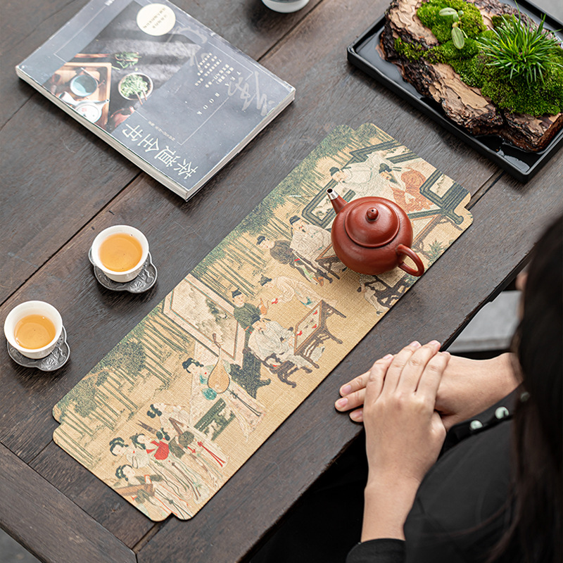 Chinese Ancient Painting Waterproof Dry Pour Tea Towel Cloth Double-Sided Zen Tablecloth Tea Ceremony Utensils Table Runner Tea Mat Tea Set Tea Cloth