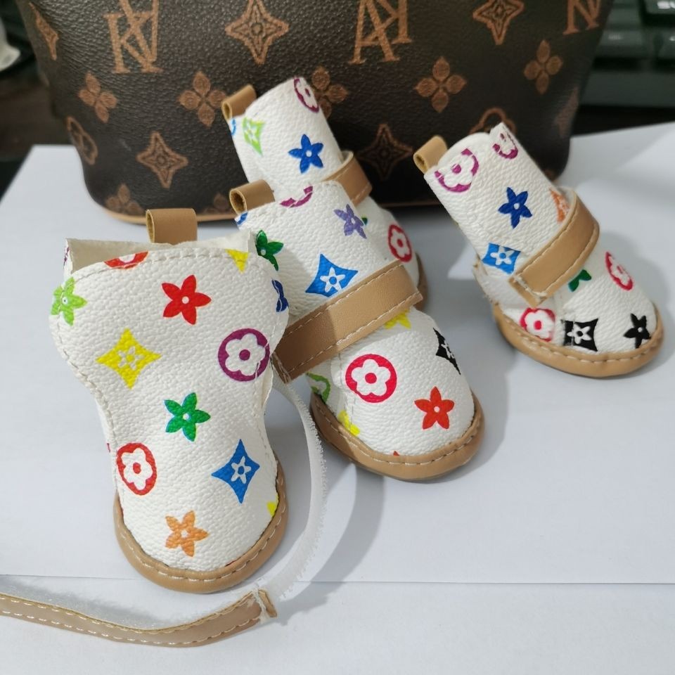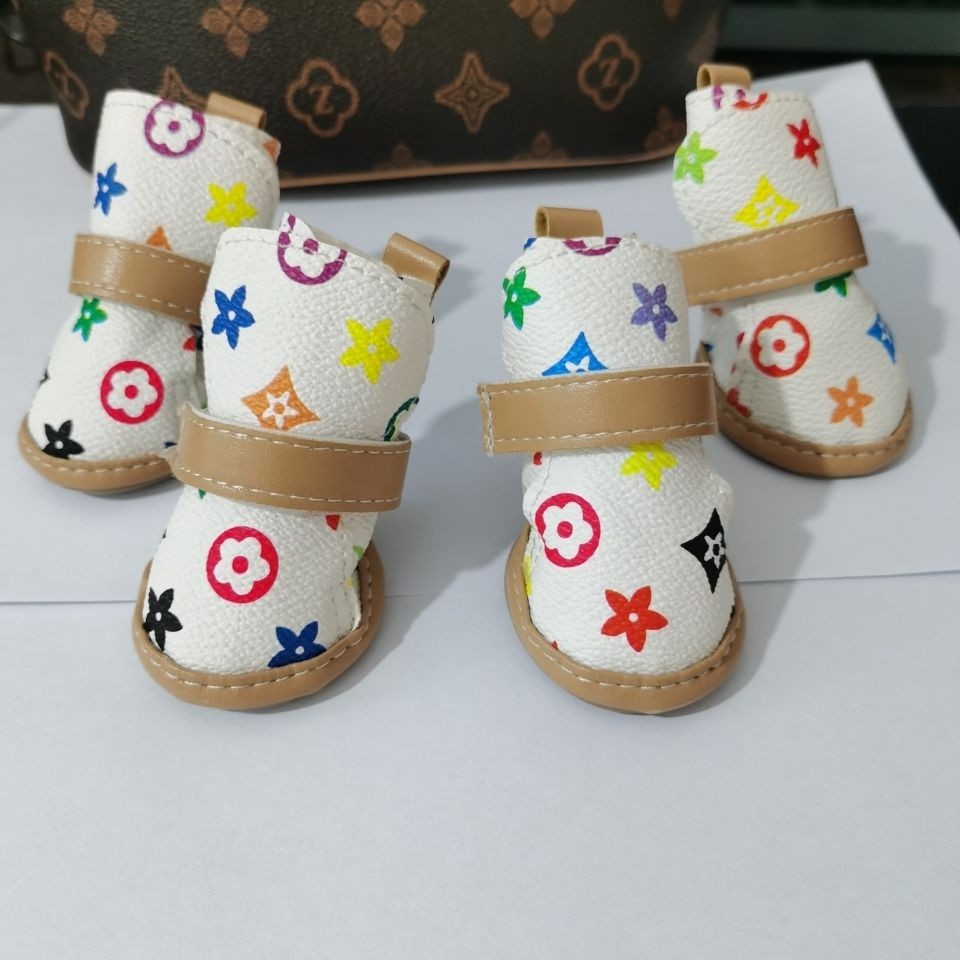 dog shoes a set of 4 no drop waterproof rain boots pet booties teddy small dog spring, summer, autumn and winter four seasons pu