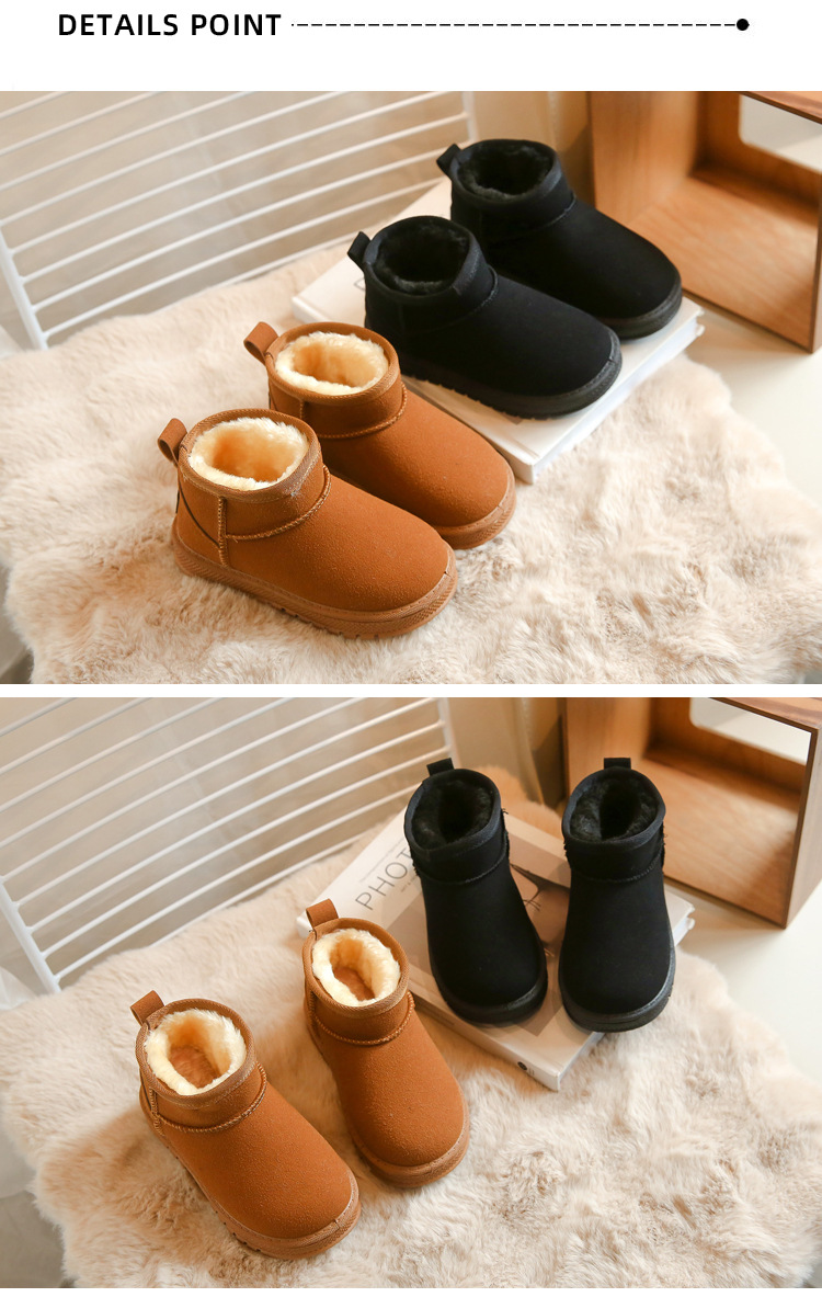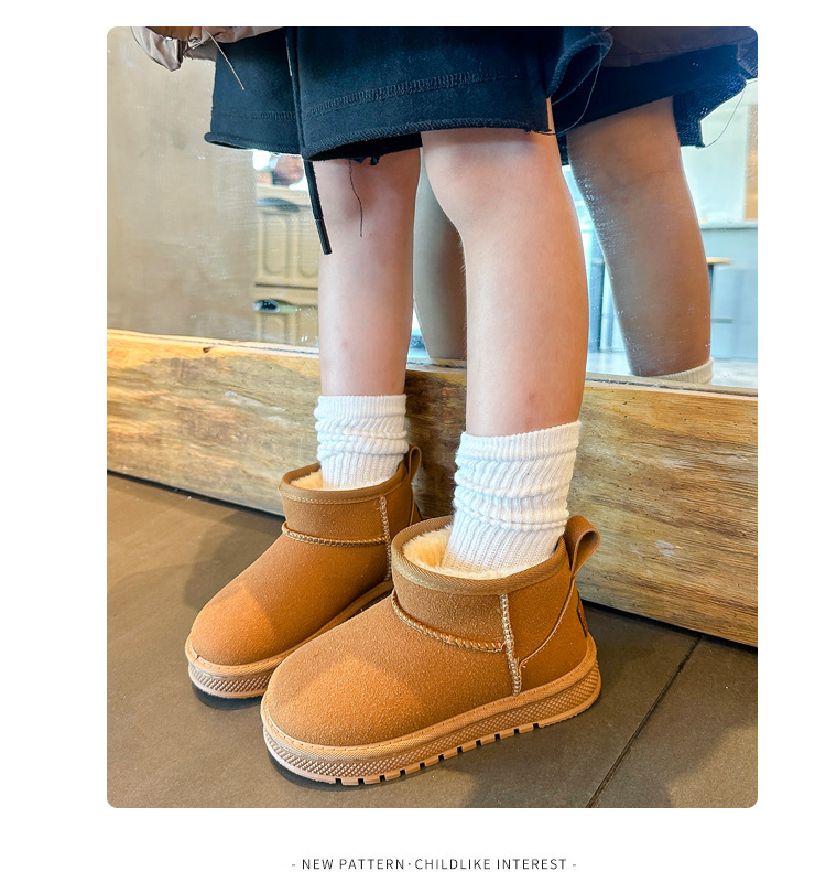 Children's Snow Boots 2023 Winter New Fleece-lined Thickened Girls' Non-Slip Medium and Big Children Soft Bottom Waterproof Boy's Cotton Boots Tide