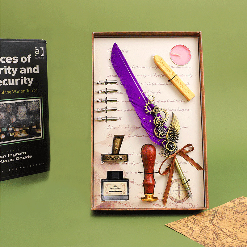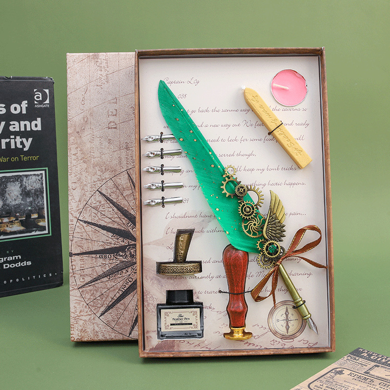 European Retro Feather Pen Suit Harry Potter Dipped in Water Pen Gift Box Practical Birthday Gift for Boys and Girls
