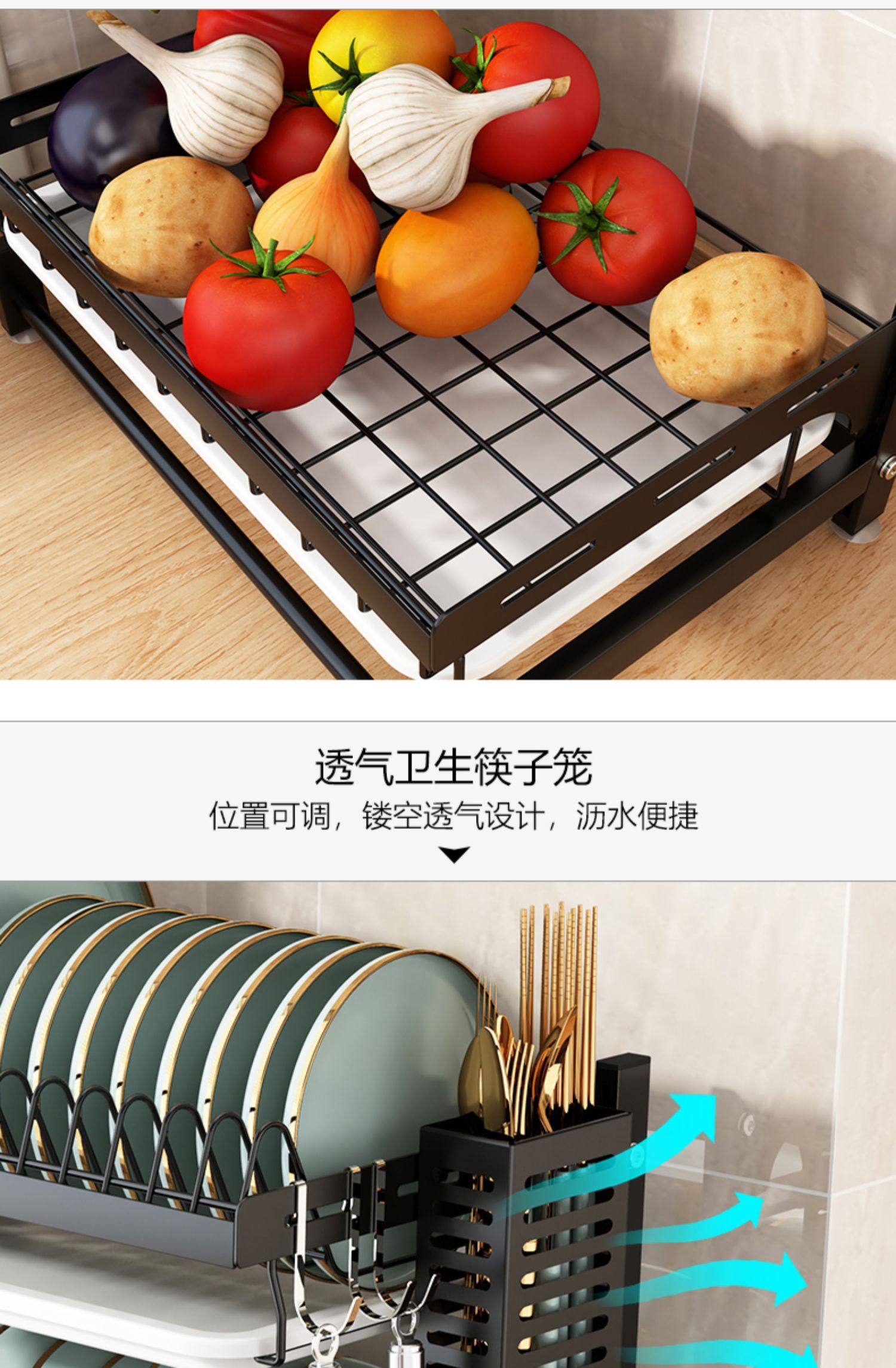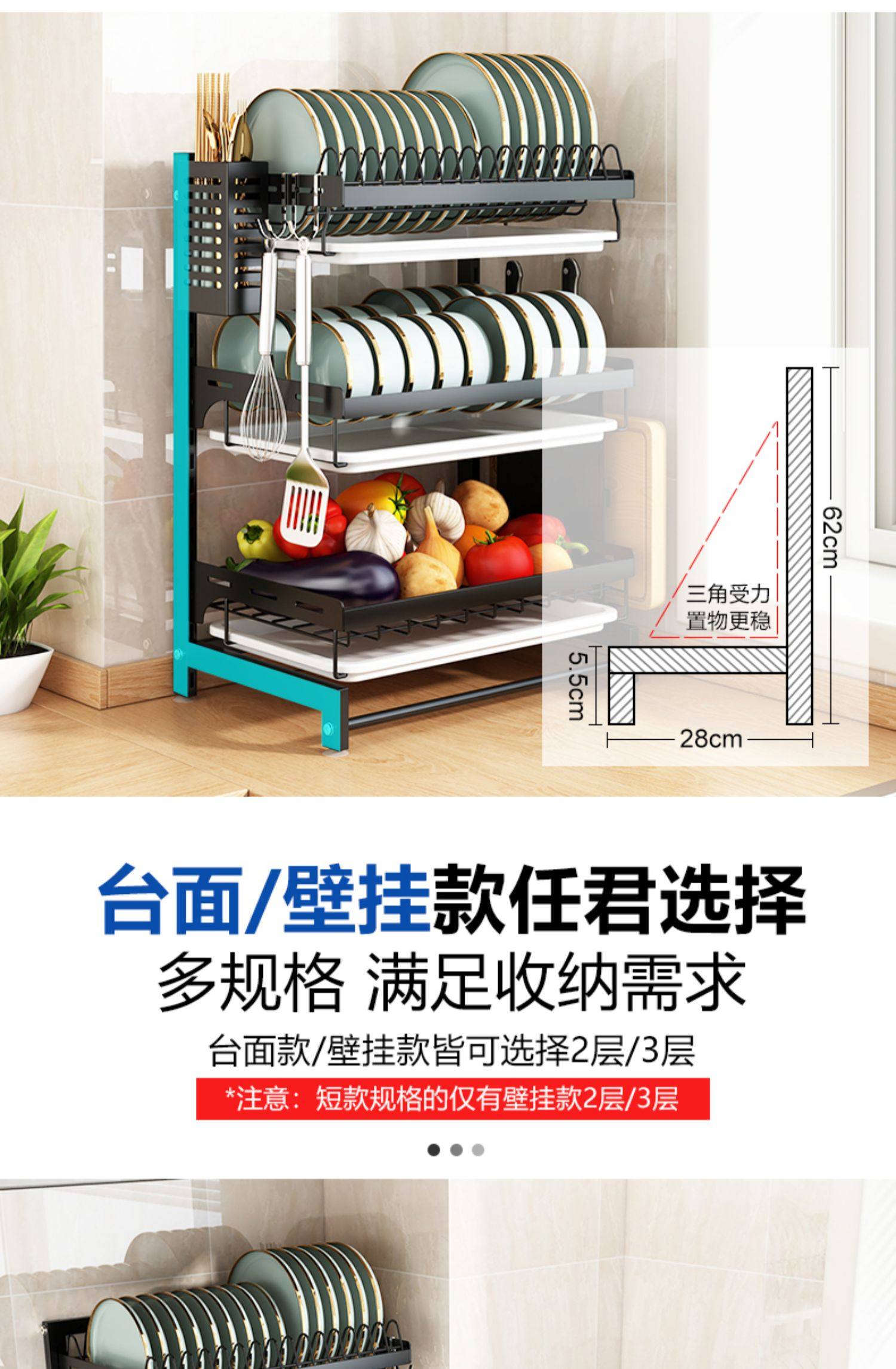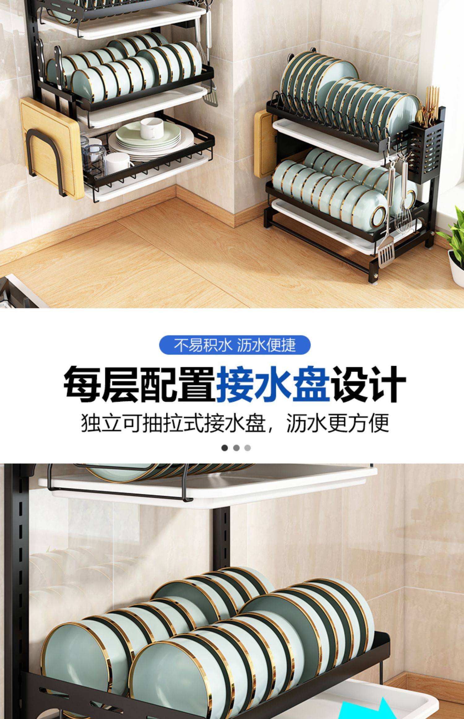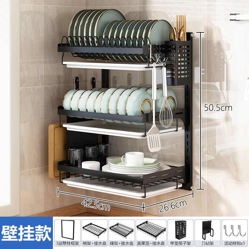 wall-mounted (countertop) 3-layer dish rack full set