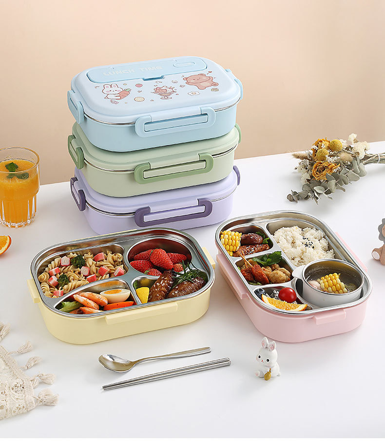 316-pink four-grid 1500ml + tableware + soup bowl