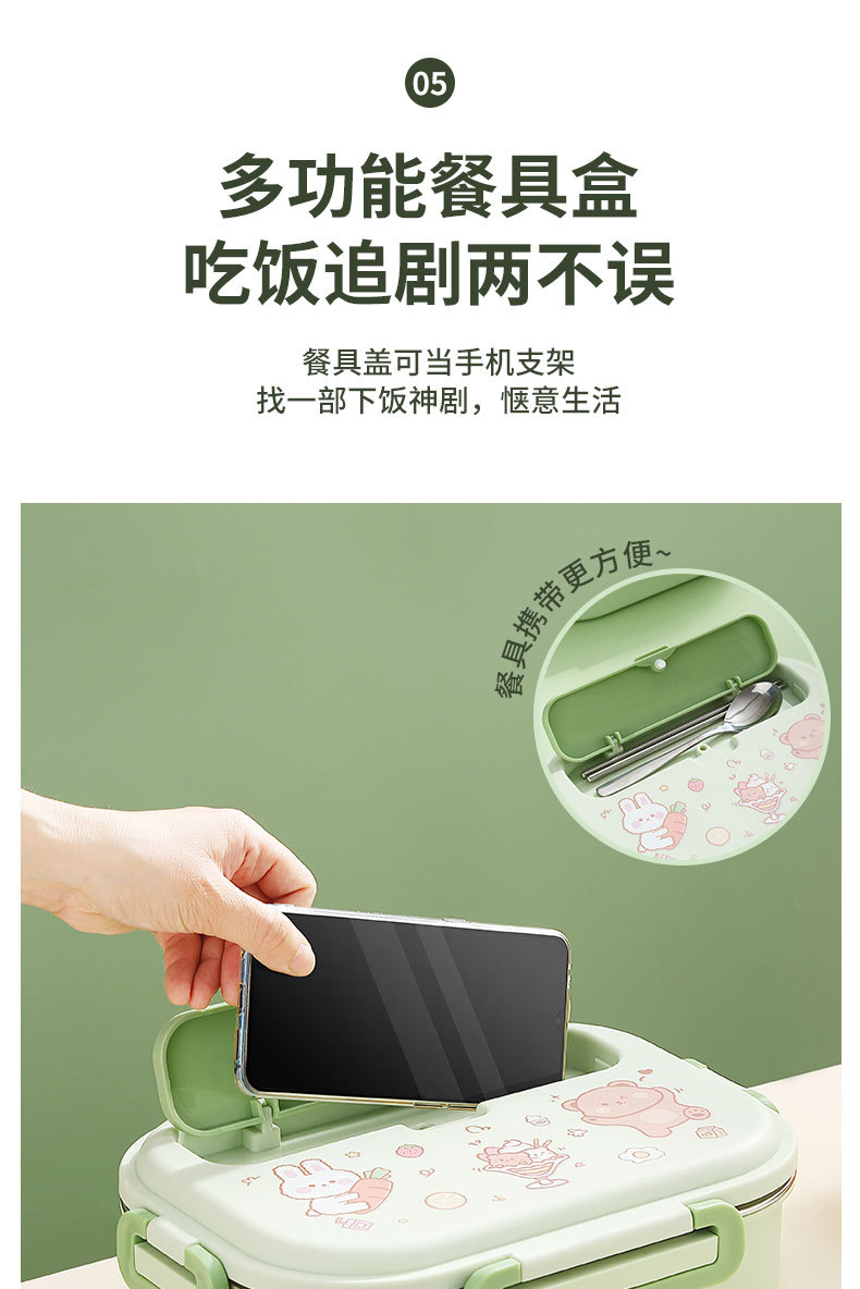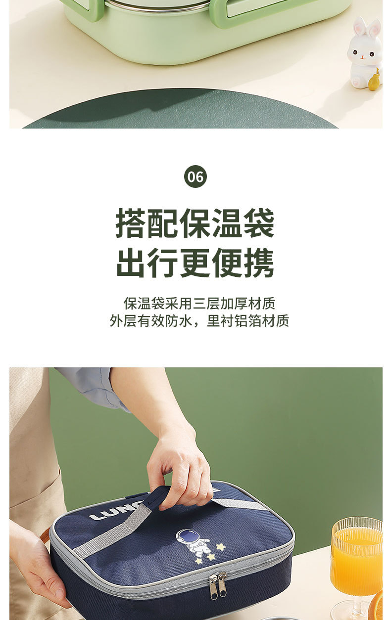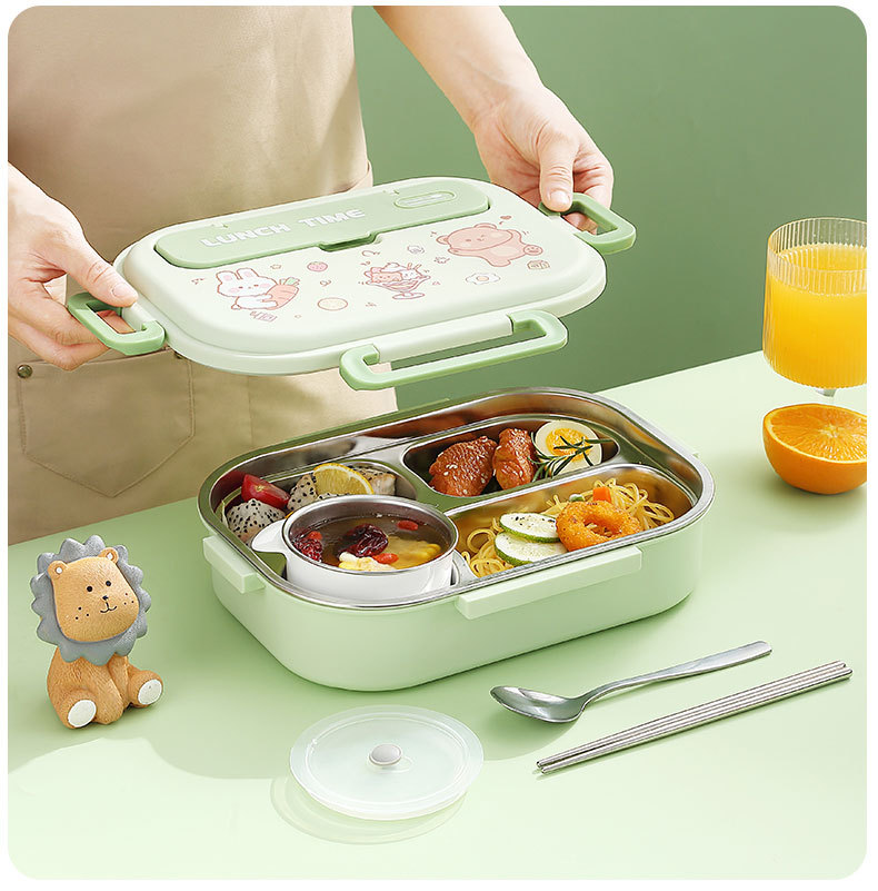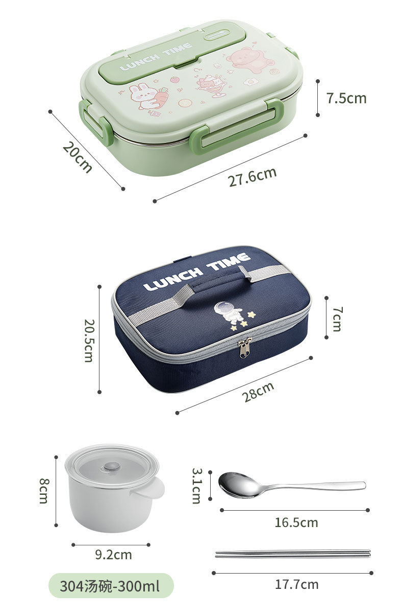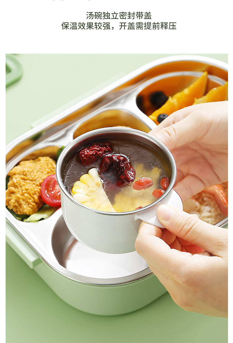 316-green four-grid 1500ml + tableware + soup bowl + thermal bag