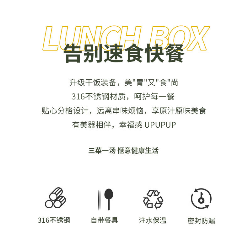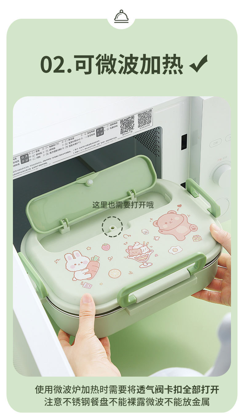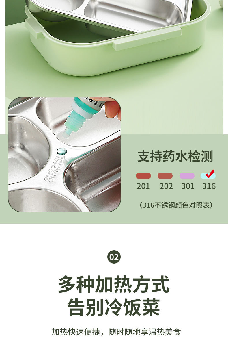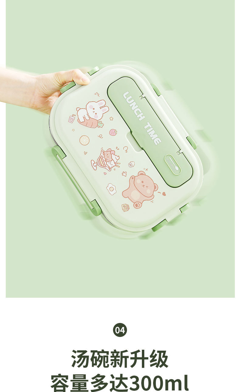 316-green four-grid 1500ml + tableware + soup bowl + thermal bag