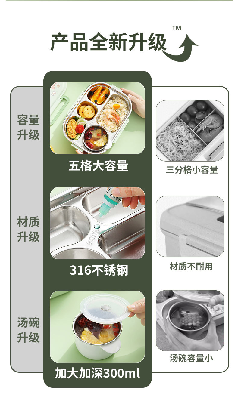 316-green five grid 1500ml + tableware + soup bowl + thermal bag