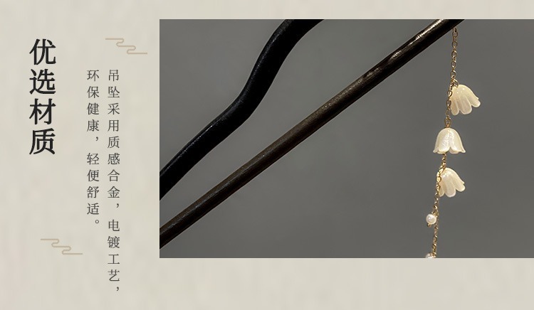 1# white jade flower tassel hairpin
